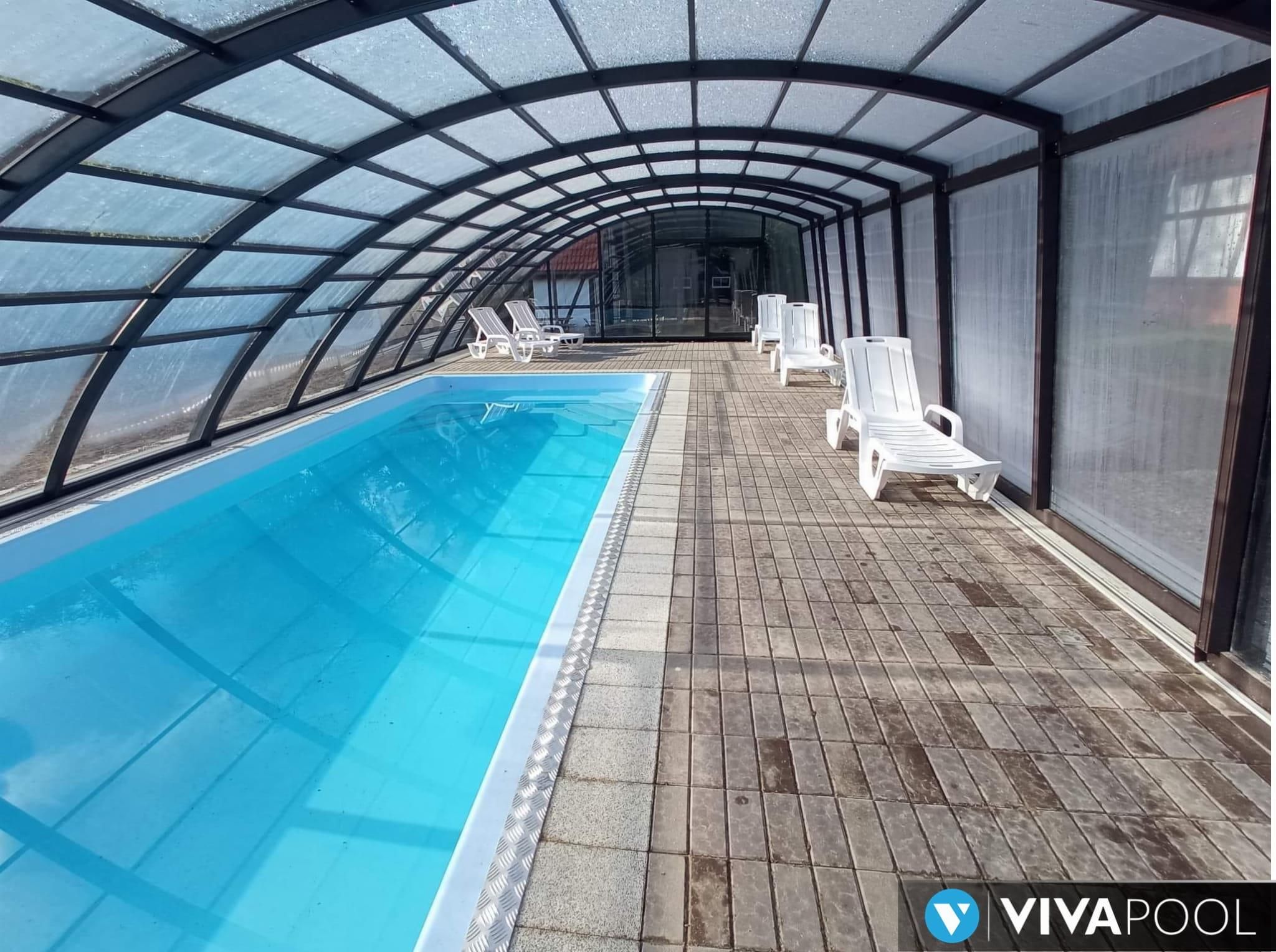 Eleganckie zadaszenie na basen wysokie OPTIMA 12,83 x 6,00 x 2,50 poliwęglan lity pokrywa basenowa Piotrków Trybunalski