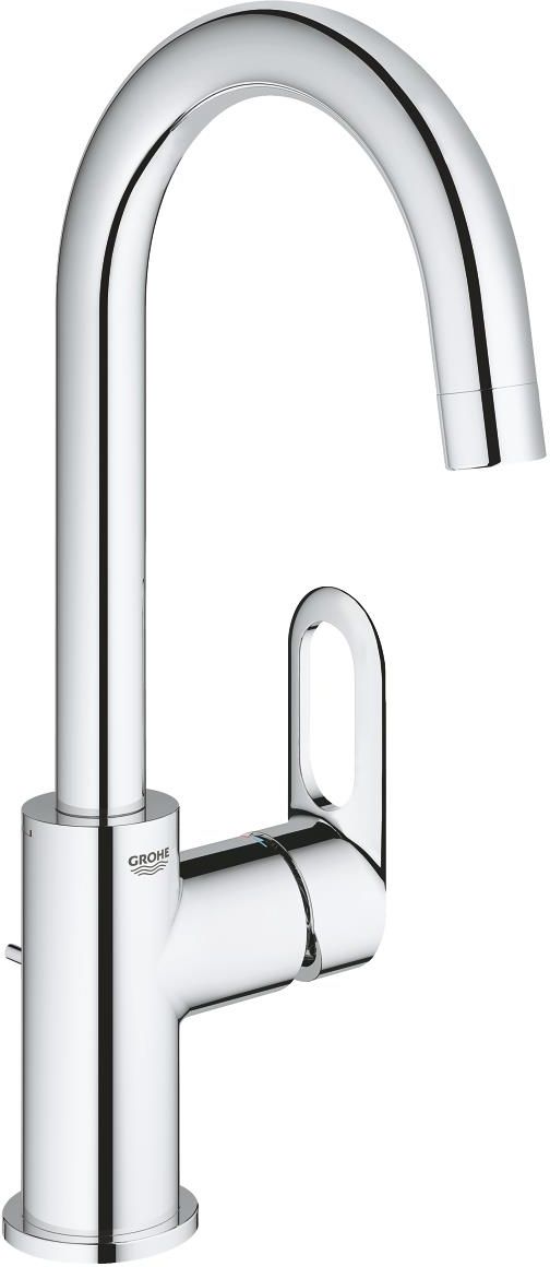 Grohe Bateria umywalkowa Start Loop L, wysoka wylewka Bateria umywalkowa GROHE Start Loop w rozmiarze L łączy w sobie ekologie i eleganckie wykonanie. Na lata stanie się funkcjonalnym elementem Twojej łazienki, który wciąż na nowo będzie przyciągał wzrok Ciebie oraz Twoich gości. Wyposażona została w perlator w technologii EcoJoy , dzięki czemu zużycie wody ograniczono do zaledwie 5,7 l/min, chroniąc cenne naturalne zasoby. Dodatkowo bateria posiada obracaną wylewkę. Za jej doskonale płynną obsługę odpowiada ceramiczna głowica SilkMove, doceniona na całym świecie za precyzje w ustawieniu temperatury oraz ciśnienia wody, podczas gdy chromowana powłoka StarLight chroni baterię Start Loop przed uszkodzeniami. Wysokość korpusu baterii wynosi 311 mm, a zasięg wylewki to 209 mm. Zintegrowany perlator zmiękcza strumień wody i chroni przed rozpryskiwaniem się kropli wody wokół umywalki. W zestawie znajdują się giętkie węże przyłączeniowe oraz zestaw odpływowy z drążkiem podciąganym 1 1/4".. Baterię montuję się w błyskawiczny sposób dzięki technologii Grohe QuickFix - system szybkiego montażu. Specyfikacja techniczna Rodzaj: Jednouchwytowe Waga: 1,68 kg Wysokość: 31,1 cm Szerokość: 6,8 cm Głębokość / Grubość: 14,0 cm