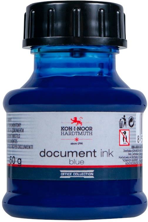 Atrament to piór wiecznych Koh i Noor niebieski Atrament do piór wiecznych, jest odporny na działanie światła i wilgoci, po wyschnięciu nie można go usunąć bez uszkodzenia papieru. Atrament w butelce 30 gram.