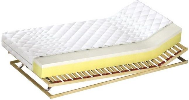 WKŁAD Pianka wysokoelastyczna "kaltschaum" o wysokości 12 cm w połączeniu z termoelastyczną pianką o grubości 4 cm. Pianka termoelastyczna zmienia swoją twardość pod wpływem temperatury ciała idealnie dopasowując się do jego kształtu. POKROWIEC DO WYBORU Alergik z frotty białej pikowanej …