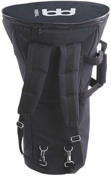 Profesjonalny pokrowiec do bębnów djembe firmy Meinl, typ MDJB-M.Pokrowiec wykonany jest z mocnego, trwałego i nieprzemakalnego materiału łatwego w czyszczeniu.Pokrowiec posiada dwie wygodne wypełnione gąbką szelki o regulowanej długości, które zapinane karabińczykiem pozwalają na wygodne i długotrwałe noszenie bębna jak plecaka lub na jednym ramieniu. Wzdłuż szelek znajdują się szlufki umożliwiające przyczepienie do nich innych przedmiotów niezbędnych w podróży.Pokrowiec wyposażono w praktyczną kieszeń, dodatkowe dwie rączki do noszenia pokrowca w dłoni,Zarówno górna klapa, podstawa jak i ścianki pokrowca są wypełnione gąbką o grubości ok. 2cm., która skutecznie zabezpiecza cały bęben przed uszkodzeniem. Logo firmy Meinl widoczne na górnej klapie i kieszeni wykonano techniką haftu maszynowego.Górna klapa jest dodatkowo usztywniona i zamykana na zamek błyskawiczny zasuwany w dwie strony.Dno pokrowca jest dodatkowo usztywnione i zabezpieczone przed ubrudzeniem przy postawieniu na podłożu.Wymiary maksymalne bębna, który mieści się w pokrowcu :wysokość 63cm.średnica zewnętrzna od góry 40cm.średnica zewnętrzna podstawy 22cm.Waga 1,7 kg