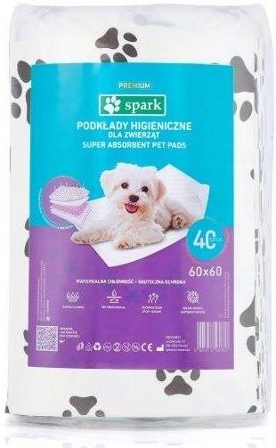 Spark Higieniczne podkłady dla zwierząt 60x60 cm, 40 szt Podkłady higieniczne Spark to uniwersalny produkt, który sprawdzi się na różnych etapach życia i potrzebach psa. Ich kompaktowy rozmiar, skuteczna chłonność i łatwość użycia czynią je niezastąpionym elementem każdej psiej wyprawki. Niezawodna chłonność – warstwa pulpy celulozowej z dodatkiem super chłonnych granulek szybko zamyka wilgoć w środku podkładu Brak efektu "mokrych łap" - dzięki zaawansowanej technologii, nasze podkłady wchłaniają wilgoć w mgnieniu oka, pozostawiając powierzchnię suchą i czystą. Ochrona przed przeciekaniem – zapomnij o niechcianych plamach na podłodze. Podkłady Spark wyposażone są w wodoodporną warstwę, która skutecznie zatrzymuje wilgoć wewnątrz i nie przesiąka. Łatwe w użyciu – wystarczy rozłożyć podkład w wybranym miejscu, a resztą zajmie się Twój pies. Gdy pupil spełni swoje zadanie, po prostu wyrzuć podkład i zastąp czystym. Wyjątkowy design - urocze łapki na spodzie podkładu. Zastosowanie podkładów higienicznych Spark Wsparcie w nauce czystości – nasze podkłady to niezastąpiony pomocnik podczas nauki szczeniaka, jak załatwiać potrzeby w wyznaczonym miejscu. Ich kompaktowy rozmiar jest idealny dla małych piesków, a chłonne warstwy szybko wchłaniają wilgoć, eliminując nieprzyjemne zapachy. Doskonałe przy opiece nad chorym pupilem i w trakcie rekonwalescencji - psy po zabiegach weterynaryjnych lub w trakcie leczenia często wymagają specjalnej opieki. Podkłady chłonne sprawdzają się w takich przypadkach, tworząc higieniczne miejsce odpoczynku i ograniczając ryzyko infekcji. Idealne dla psów w każdym wieku – niezależnie od tego, czy Twój pies jest szczeniakiem, czy starszym pupilem, który ma trudności z kontrolowaniem pęcherza, podkłady Spark zapewnią mu komfort, a Tobie spokój i porządek. Komfort w podróży - podczas dłuższych podróży samochodem podkłady higieniczne używane są jako zabezpieczenie siedzeń, klatek transportowych lub bagażnika. Pomoc dla suczek podczas cieczki - podkłady wykorzystywane są też jako dodatkowe zabezpieczenie dla suczek w okresie cieczki, minimalizując ryzyko zabrudzeń w domu. Bezpieczna przestrzeń na załatwianie potrzeb dla małych ras psów, które większość czasu spędzają w domu - podkłady stanowią wygodne miejsce do załatwiania potrzeb fizjologicznych, zwłaszcza gdy właściciel nie może regularnie wychodzić na spacery. Zabezpieczenie w miejscach publicznych - wizyta u weterynarza, wystawy psów czy pobyt w hotelu dla zwierząt to sytuacje, w których podkłady pomagają zachować czystość i komfort, zapewniając higieniczne warunki w każdym miejscu.