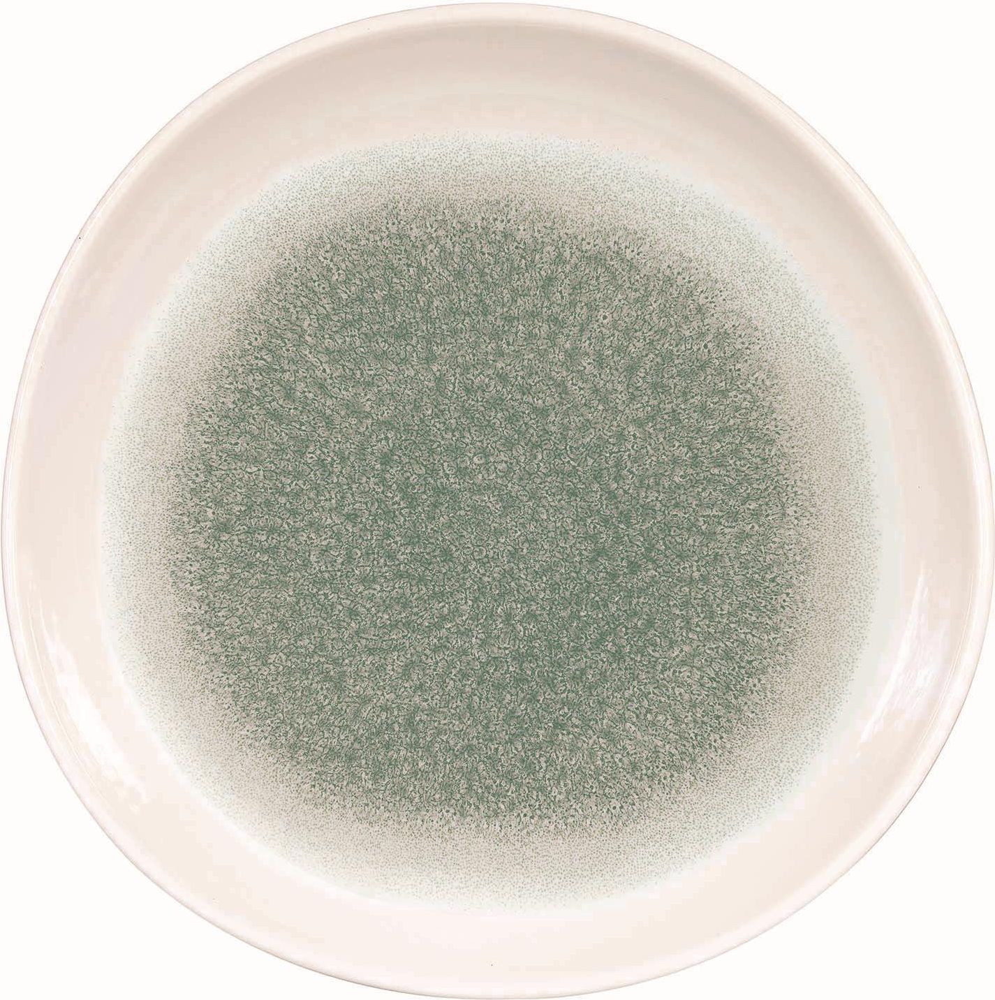Talerz porcelanowy płytki o organicznym kształcie o śr. 28.6 z linii Raku Topaz Blue kolekcji Studio Prints Raku marki Churchill. Kolekcja Studio Prints Raku to tradycyjna ceramika rzemieślnicza. Zdobienia Churchill na nieregularnych kształtach naczyń są zainspirowane tradycyjnym glazurowaniem. Kolekcja jest synonimem trwałości oraz bezpieczeństwa, które są wymagane w profesjonalnej gastronomii. Porcelana której tutaj użyto jest bardzo mocna, niewchłaniająca wilgoci, bardziej higieniczna i odporna na wysokie temperatury. Można myć w zmywarce oraz używać w mikrofalówce.