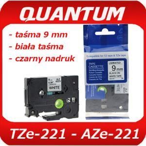 Taśma do Brother, TZe-S221, 9 mm, super mocny klej, biała taśma - czarny nadruk. Zamiennik Quantum AZE-S221 TZES221AZES221 Piotrków Trybunalski