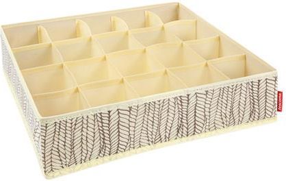 ORGANIZER na bieliznę i skarpetki TESCOMA kremowy Specyfikacja techniczna Id produktu: 145942 Wysokość całkowita: 10,0 cm Kolor: kremowy Długość: 40,0 cm Szerokość całkowita: 35,0 cm Waga: 0,2 kg Symbol producenta: 899826,11 Ilość: 1 szt. Seria: tescoma fancy home Materiał: materiał syntetyczny -------------------------------------------- Istotne informacje: Posiada 20 przegródek