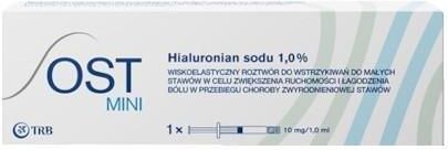 OpisOst Mini Preparat wiskoelastyczy 1 ampułko-strzykawka to wyrób medyczny, który w swoim składzie zawiera hialuronian sodu, który może pomóc zminimalizować mechaniczne obciążenie stawu, złagodzić dolegliwości bólowe oraz poprawić ruchomość stawów. Skład wyrobu medycznego1 ml roztworu izotonicznego (pH 7) zawiera 10,0 mg hialuronianu sodu, chlorek sodu, fosforan disodu, diwodorofosforan sodu i wodę do wstrzykiwań. Zawartość opakowaniaW opakowaniu znajduje się 1 ampułkostrzykawka 10 mg/1,0 ml OST MINI w sterylnym opakowaniu.Przeznaczenie wyrobu medycznegoWyrób stosować w przypadku: bólu i ograniczenia ruchomości w wyniku urazu małych stawów maziówkowych (np. stawów międzykręgowych odcinka lędźwiowego kręgosłupa, stawu nadgarstkowośródręcznego kciuka, bliższego stawu palucha i stawu skroniowożuchwowego) oraz zmian zwyrodnieniowych.Charakterystyka produktuDostawowe wstrzyknięcia hialuronianu sodu może poprawić ruchomość stawu oraz zmniejszyć dolegliwości bólowe.Sposób użycia wyrobu medycznegoWyrób OST MINI należy wstrzykiwać do chorego stawu 1 raz w tygodniu, do wykonania łącznie 1-3 wstrzyknięć.Produkt powinien być stosowany przez wykwalifikowany personel medyczny.Ostrzeżenia i środki ostrożnościNie stosować w przypadku nadwrażliwości na którykolwiek ze składników produktu. Leczenie przy pomocy OST MINI nie jest zalecane u dzieci, kobiet w ciąży i karmiących piersią lub w chorobach zapalnych stawów, jak reumatoidalne zapalenie stawów lub choroba Bechterewa. W przypadku wystąpienia wysięku w stawie należy najpierw zmniejszyć wysięk. Należy przestrzegać krajowych wytycznych wykonywania iniekcji dostawowych, w tym dokładnej dezynfekcji miejsca wstrzyknięcia i innych środków zapobiegających infekcji stawów. Produkt OST MINI należy wstrzykiwać dokładnie do jamy stawowej, w razie konieczności pod kontrolą badań obrazowych. Należy unikać wstrzyknięć do naczyń krwionośnych lub okolicznych tkanek. Nie stosować, jeśli ampułkostrzykawka lub sterylne opakowanie są uszkodzone. Należy usunąć wszelkie resztki roztworu, które nie zostały użyte bezpośrednio po otwarciu. W przeciwnym razie nie można zagwarantować sterylności i może się to wiązać z ryzykiem zakażenia. Nie resterylizować, ponieważ może to prowadzić do uszkodzenia produktu. Nie są znane dotychczas żadne informacje na temat wpływu produktu OST MINI na wyniki badań diagnostycznych, takich jak obrazowanie techniką rezonansu magnetycznego, oceny stanu klinicznego lub zabiegów terapeutycznych. Użytą strzykawkę należy wyrzucić bezpośrednio po zastosowaniu do pojemnika na ostre odpady. Nie wyrzucać ampułkostrzykawki OST MINI razem z odpadami domowymi. Należy przestrzegać lokalnych wytycznych dotyczących prawidłowego usuwania pojemników na ostre odpady. W bardzo rzadkich przypadkach (rzadziej niż u 1 na 10 000 pacjentów) mogą wystąpić wtórne działania miejscowe, takie jak ból, uczucie gorąca, zaczerwienienie, obrzęk stawu/wysięk w stawie i częstoskurcz, w trakcie wstrzykiwania lub po wstrzyknięciu produktu OST MINI. Jak w przypadku każdej inwazyjnej metody leczenia stawów, w bardzo rzadkich przypadkach może wystąpić zakażenie. Przed wstrzyknięciem produktu OST MINI pacjenta należy poinformować o przeciwwskazaniach i działaniach niepożądanych.