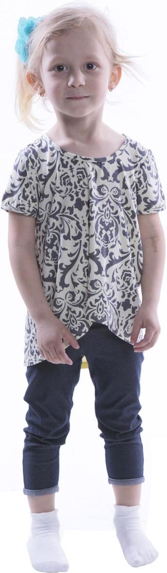 Fason: luźna Dekolt przód: okrągły Plecy: zabudowane Rękaw: krótki Zapięcie: brak Materiał: dzianina wiskoza, tkanina gładka Skład surowcowy: 72% wiskoza, 23% poliester, 5% spandex