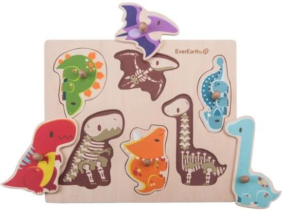 Właściwości: Puzzle z dinozaurami wspierają rozwój koordynacji wzrokowo-ruchowej. Podczas zabawy dzieci uczą się rozróżniać różne kształty i typy dinozaurów. Kompaktowe drewniane elementy z łatwymi do trzymania uchwytami są idealne dla małych dzieci do podnoszenia i umieszczania ich we właściwym miejscu. Zdolności poznawcze: logiczne myślenie dziecka jest wspierane przez zachęcanie dziecka do rozpoznawania wzorców, symetrii i struktur podczas zabawy. Dziecko zaczyna rozumieć, jak wszystko działa i może cieszyć się niektórymi z najlepszych doświadczeń podczas zabawy. Zdolności motoryczne: stymuluje zmysł dotyku dziecka i zachęca je do chwytania, promując zręczność. Dzieci nabierają wyczucia delikatnych ruchów i odkrywają własne dłonie. Wypróbowywanie różnych rzeczy, sprawdzanie przedmiotów i postrzeganie rzeczy wszystkimi zmysłami pomaga dziecku rozwijać zmysły na dłuższą metę. Rozpoznawanie kształtów: bawiąc się różnymi kształtami i figurami, dziecko zaczyna rozumieć kształty, co pomaga poprawić jego świadomość przestrzenną i zdolności motoryczne. Koordynacja ręka-oko: skutecznie promuje koordynację ręka-oko i pomaga rozwijać zdolności motoryczne i propriocepcję dziecka. Dziecko z większą sprawnością uczy się posługiwania się dłońmi i palcami. OSTRZEŻENIE: NIEODPOWIEDNIE DLA DZIECI W WIEKU PONIŻEJ 24 MIESIĘCY. UWAGA: NIEKTÓRE Z ZAMOCOWAŃ STANOWIĄ ZAGROŻENIE ZADŁAWIENIA DLA MAŁYCH DZIECI. DO UŻYTKU POD BEZPOŚREDNIM NADZOREM OSOBY DOROSŁEJ! PRZED ZABAWĄ NALEŻY USUNĄĆ FOLIĘ, ETYKIETY I MOCOWANIA. NIEBEZPIECZEŃSTWO ZADŁAWIENIA SIĘ PRZEZ MAŁE DZIECI DROBNYMI ELEMENTAMI. Składniki: Produkt nietoksyczny, bezpieczny dla dzieci, bez ołowiu, wykonany z drewna z upraw odnawialnych. Zabawki są wolne od Bisfenol A (BPA), nietoksyczny, bezpieczny dla dzieci, bez ołowiu, wykonany z drewna z upraw odnawialnych. Opakowanie: 1 sztuka