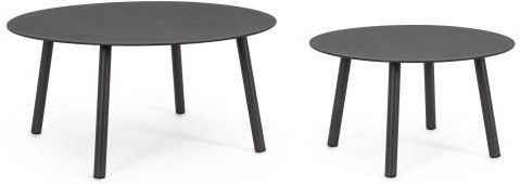 %description% WYMIARY Stolik duży: wys: 38,5 / Ø 80 cm Stolik mały: wys: 34 / Ø 60 cm MATERIAŁ Aluminium Zestaw ogrodowych stolików kawowych Aminta antracyt Zestaw kawowych stolików ogrodowych Aminta to doskonałe połączenie minimalistycznej elegancji i praktycznego designu. Proste, okrągłe formy …