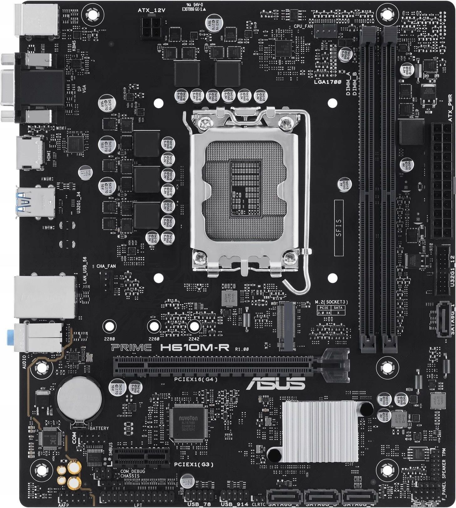 ASUS PRIME H610M-R-SI LGA1700 H610 DP HDMI VGA MB Asus "" Typ gniazda procesora: LGA1700 Chipset: H610 Porty wideo: DP (DisplayPort), HDMI, VGA