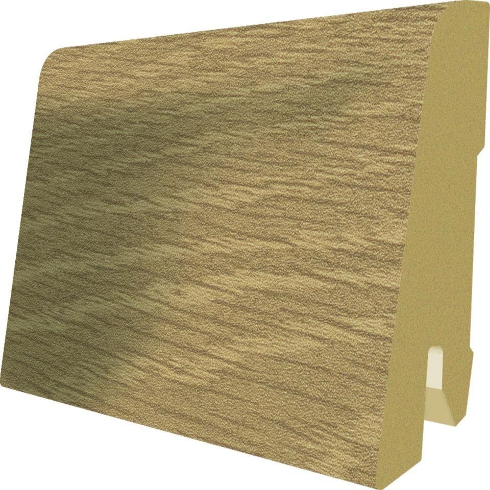 LISTWA PRZYPODŁOGOWA MDF 2400X60X17 L345 278564 to model, który prezentuje ciepły odcień oraz bogatą strukturę usłojenia, która sprawdzi się w kompozycji ze wzorem paneli dostępnych w sklepie Komfort. Długość produktu wynosi 240 cm, szerokość 1,6 cm, zaś wysokość listwy przypodłogowej mierzy 6 cm. Szybki, prosty i bezpieczny sposób montażu za pomocą klamer pozwala odpiąć listwę w każdym momencie – między innymi w celu ukrycia kabli i przewodów. Listwy przypodłogowe MDF laminowane są wysoce odporne na uszkodzenia mechaniczne – takie jak zarysowania, pęknięcia czy przebarwienia. Ponadto produkt zapewnia także funkcję ochronną ściany oraz zabezpieczenia szczeliny dylatacyjne przed dostaniem się wilgoci i zniekształceniem podłogi.