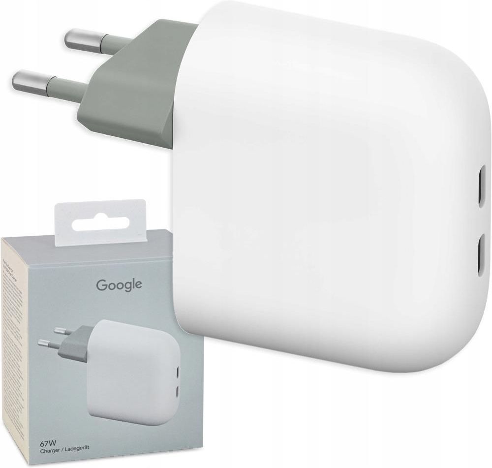 Oryginalna ładowarka sieciowa GOOGLE Pixel Flex GA09856-EU 67W z dwoma złączami USB-C Naładuj smartfon z serii Pixel do 70% w około 30 minut dzięki ładowarce Google Pixel Flex 67W. Zaprojektowana z myślą o maksymalnej wydajności - zapewnia błyskawiczne i efektywne zasilanie, umożliwiając Ci szybki powrót do działania bez zbędnych przerw. Niezależnie od tego, czy jesteś w domu, w biurze, czy w podróży, zawsze masz pewność, że Twoje urządzenie jest gotowe na wyzwania dnia. Szybkie ładowanie dwóch urządzeń Zasilacz wspiera standardy Power Delivery (PD) i Programmable Power Supply (PPS) oferując błyskawiczne ładowanie z maksymalną mocą 67W. Dwa porty USB-C umożliwiają uzupełnienie poziomu baterii w dwóch urządzeniach w jednym czasie. Pixel Flex została opracowana z myślą o smartfonach Google Pixel i nadaje im priorytet szybkiego ładowania. Po podłączeniu telefonu Pixel zasilacz automatycznie go rozpozna i rozpocznie szybkie ładowanie go z maksymalną mocą, nawet jeśli w tym samym momencie zasilane jest inne urządzenie. Priorytet dla smartfonów Pixel Ładowarka Pixel Flex z 2 portami 67 W rozpoznaje podłączone urządzenia i ładuje je priorytetowo lub maksymalizuje moc wyjściową wymaganą przez urządzenie. Priorytety są następujące: Priorytet 1: telefony Pixel Priorytet 2: ładowarka Pixelsnap (ze stojakiem lub bez niego) Priorytet 3: urządzenia Google inne niż telefony, np. Pixel Tablet i Pixel Buds Priorytet 4: dowolne urządzenie inne niż Pixel Uniwersalna kompatybilność Produkt jest zgodny z szeroką gamą urządzeń USB-C, takimi jak smartfony, tablety, laptopy oraz z innymi, które obsługują standard ładowania USB Power Delivery (USB-PD). Ponadto ma ona certyfikat „Działa z Chromebookiem”, co oznacza, że jest zoptymalizowana do pracy z najnowszymi Chromebookami. Pixel Flex ma dwa szybkie złącza USB-C, które umożliwiają podłączenie dowolnych kabli z takim wyjściem. Produkt może zasilać większość urządzeń, m. in. słuchawki, kamery czy iPhony. Uwaga! Przedmiotem oferty jest sam zasilacz, brak kabla w zestawie. Odpowiedni przewód znajdziesz w naszej ofercie. Specyfikacja Rodzaj złącza: 2 x USB Typ C Kabel w zestawie: Brak Liczba zasilanych urządzeń: 2 Prąd wyjściowy: Port 1 i port 2: USB PD: 3.2 PPS PD: 5 V/3 A, 9 V/3 A, 15 V/4 A, 20 V/3,35 A, maks. 67 W PPS: do 11 V/3 A, 16 V/4 A, 21 V/3,35 A, maks. 67 W AVS: 9–15 V/4 A, 15–20 V/3,35 A, maks.67 W Moc [W]: 67 Szybkie ładowanie: Tak: PD i PPS Długość: 56,9 mm Szerokość: 28,5 mm Wysokość: 67 mm Waga: 152 g Czujniki: Zabezpieczenie przeciwprzepięciowe, Zabezpieczenie przed przegrzaniem, Zabezpieczenie przed zwarciem Materiały: Plastik i metal, wykonany w co najmniej 14% z materiałów z recyklingu Dedykowany model: Urządzenia zgodne ze standardem Power Delivery