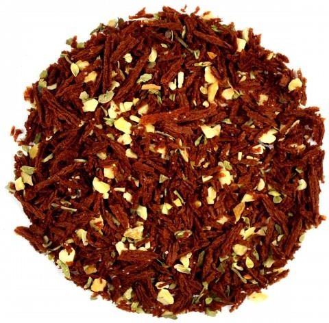 Pomidor czosnek bazylia jest to mieszanka czterech suszonych warzyw i ziół: pomidorów,czosnku,bazylii i oregano. Nada ona atrakcyjności Twojej potrawie ale również niesamowity smak. Zastosowanie Ta ciekawa mieszanka pasuje szczególnie do past,sosów ,pizzy,zapiekanek czy surówek ale przy odrobinie wyobraźni pomoże wzbogacić smak także mięsu i marynatom. Dla ludzi lubiących przyprawić sobie poranny twarożek czy jogurt również świetnie się nada. Przez kucharzy używana w kuchni śródziemnomorskiej i włoskiej. Sposób używania Użycie tej przyprawy jest bardzo proste, jedno co należy zrobić to otworzyć opakowanie i dodać kilka szczypt do wybranego przez Ciebie posiłku. Skład: pomidory(64%), czosnek(23%), bazylia(4%) Wartość energetyczna: 1305 kJ / 306 kcal, Tłuszcz 1,5 g, w tym kwasy tłuszczowe nasycone 0,6 g, Węglowodany 57 g, w tym cukry 34 g, Białko 17 g, Sól 6,1 g Kraj pochodzenia: Polska Masa netto: 100 g Produkt pakowany jest w opakowanie typu "doypack" ze struną, co pozwala na zachowanie długiej świeżości. To opakowanie pozwala na częste otwieranie i zamykanie. Gwarantuje trwałość i pewność co jest ważne podczas transportu. Przechowywać w suchym i ciemnym miejscu ! Produkt może zawierać śladowe ilości alergenów: gorczycę, seler, sezam, zboża zawierające gluten, orzechy, składniki mleka i jaj w proszku, soję !