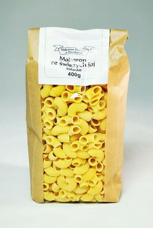 Makaron kolanka jajeczne 400g Kosz Natury posmakuj domowego makaronu naturalnej produkcji. Idealny do dań z makaronem, zup, zapiekanek czy podawany na słodko z owocami. Skład: mąka makaronowa z pszenicy zwyczajnej, semolina mąka z pszenicy twardej Durum, 2 świeże jaja na kg mąki ok 9% woda, …