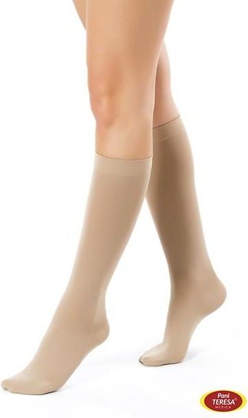 PANI TERESA Podkolanówki uciskowe CCL1, czubek otwarty, krótkie, kolor beżowy, rozmiar L, 1 szt. Pisz