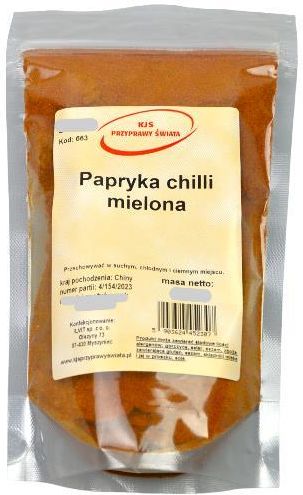 Papryka chilli mielona wyróżnia się bardzo ostrym smakiem oraz intensywnym zapachem.Posiada wiele cudownych właściwości leczniczych w związku z czym powinna stanowić nieodłączny element diety.Szczególnie polecana jest dla dań kuchni Węgierskiej, Hiszpańskiej i Meksykańskiej. Zastosowanie Jest stosowana do tradycyjnych dań meksykańskich o charakterystycznym ostrym smaku, włoskich makaronów, a także do mięsnych marynat. Wzmacnia smak każdej potrawy. Sposób używania Należy dodać szczyptę do danej potrawy podczas przygotowywania.Można także zmieszać z innymi przyprawami i zamarynować mięso. Kraj pochodzenia: Chiny Masa netto: 1 kg Produkt pakowany jest w opakowanie typu "doypack" ze struną, co pozwala na zachowanie długiej świeżości. To opakowanie pozwala na częste otwieranie i zamykanie. Gwarantuje trwałość i pewność co jest ważne podczas transportu. Przechowywać w suchym i ciemnym miejscu ! Produkt może zawierać śladowe ilości alergenów: gorczycę, seler, sezam, zboża zawierające gluten, orzechy, składniki mleka i jaj w proszku, soję !