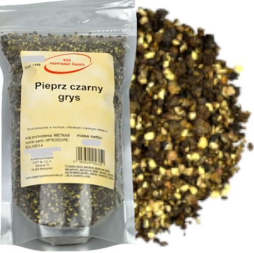 Pieprz czarny grys jest to jedna z najbardziej rozpoznawalnych przypraw na całym świecie. Może być używany do każdej potrawy, jest charakterystyczny i uniwersalny. Pieprz czarny w postaci grysu jest bardzo często używany tak samo jak mielony czy ten w kulkach. Do czego używamy pieprzu czarnego w grysie Używamy go do większości dań kuchni polskiej a także ogólnoświatowej.Smak i wartości odżywcze tego pieprzu sprawiają że jest przyprawą do dań delikatnych jak i tych ostrzejszych i bardziej orientalnych. Pozytywne właściwości pieprzu czarnego grys *zawiera ogromne ilości witamin i minerałów *wspomaga trawienie *pomaga w walce z wzdęciami, zaparciami i biegunkami Skład: pieprz czarny grys Kraj pochodzenia: Brazylia Masa netto: 250 g Produkt pakowany jest w opakowanie typu "doypack" ze struną, co pozwala na zachowanie długiej świeżości. To opakowanie pozwala na częste otwieranie i zamykanie. Gwarantuje trwałość i pewność co jest ważne podczas transportu. Przechowywać w suchym i ciemnym miejscu ! Produkt może zawierać śladowe ilości alergenów: gorczycę, seler, sezam, zboża zawierające gluten, orzechy, składniki mleka i jaj w proszku, soję !