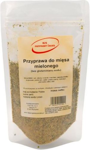 Przyprawa do mięsa mielonego (bez glutaminianu sodu) potrafi wydobyć z mięsa mielonego bardzo dużo ciekawych smaków i aromatów. Zależy to tylko i wyłącznie od inwencji w kuchni, sposób obróbki termicznej czy rodzaj potrawy. Dzięki naszej mieszance stworzysz danie, które nie będzie tylko smaczne ale także bardzo aromatyczne i pięknie wyglądające. Zastosowanie Mieszanka przypraw idealnie sprawdzi się do pulpetów jak i smażonych kotletów mielonych. Będzie pasować również do białych sosów czy do mięska przygotowywanego na burgery. Sposób używania Przyprawę należy dodać do przygotowanego mięsa w odpowiedniej ilości i dokładnie wymieszać , można dodać mąki i przygotować pulpeciki które ugotujemy w sosie lub po prostu usmażyć na patelni jako kotleciki. Skład: sól, cebula, czosnek, marchew, papryka słodka, majeranek, pasternak, cząber, pieprz czarny, rozmaryn, pietruszka natka, chilli Kraj pochodzenia: Polska Masa netto: 1000 g Produkt pakowany jest w opakowanie typu "doypack" ze struną, co pozwala na zachowanie długiej świeżości. To opakowanie pozwala na częste otwieranie i zamykanie. Gwarantuje trwałość i pewność co jest ważne podczas transportu. Przechowywać w suchym i ciemnym miejscu ! Produkt może zawierać śladowe ilości alergenów: gorczycę, seler, sezam, zboża zawierające gluten, orzechy, składniki mleka i jaj w proszku, soję !