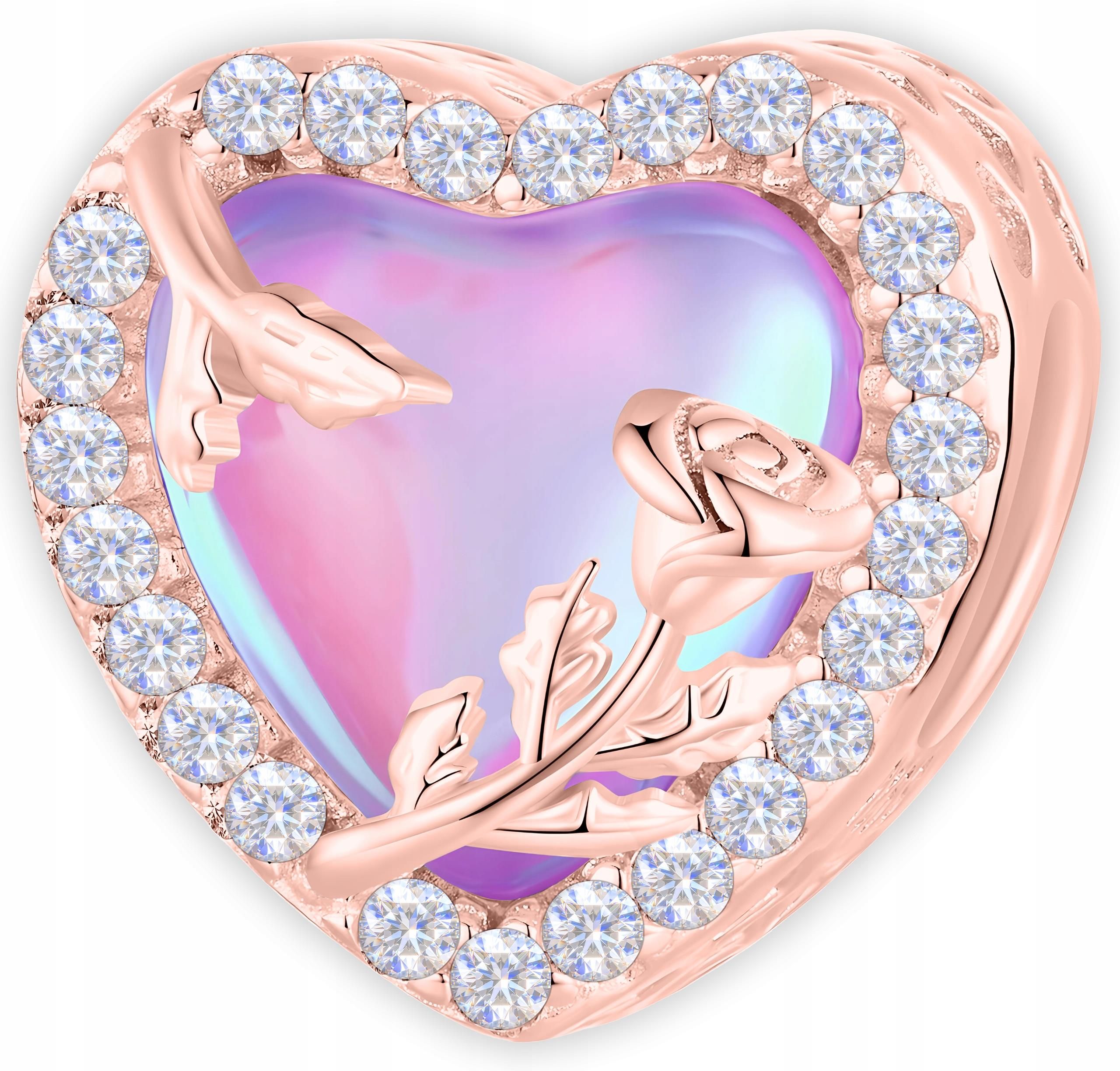 Larezo CHARMS RÓŻOWY Serce Opalizujące z Różą Cyrkonie Opalizujący Róż SREBRO 925 Piwniczna-Zdrój