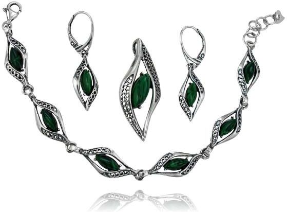 Norbisrebro Srebrny Efektowny Oksydowany Komplet Z Malachitem Piwniczna-Zdrój