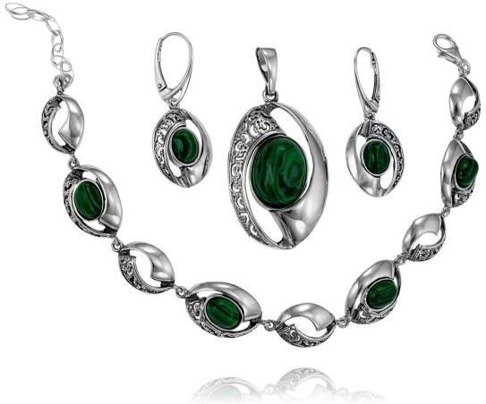 Srebrny Oksydowany Efektowny Komplet z Malachitem Malachitami Piwniczna-Zdrój