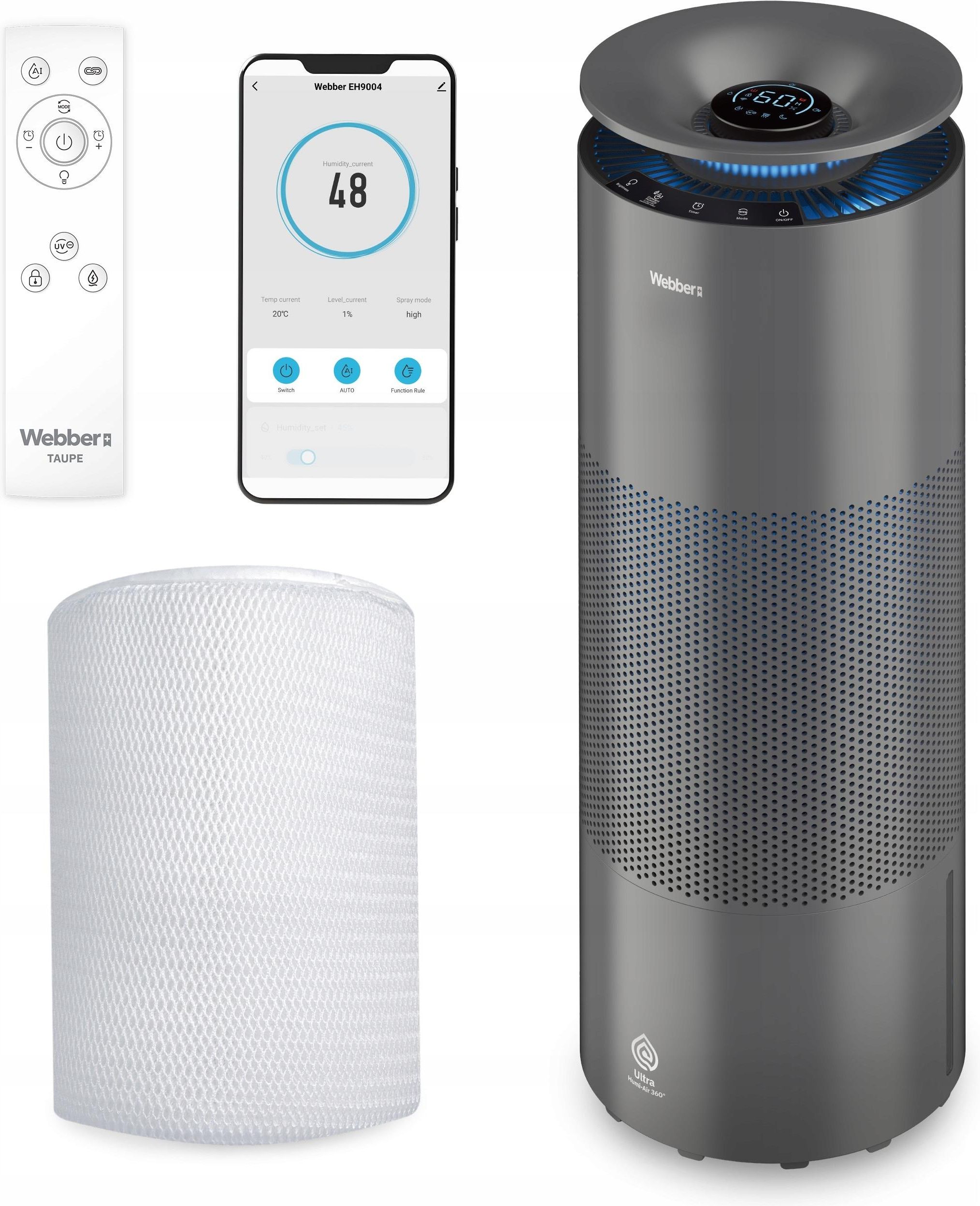 Nawilżacz ewaporacyjny Webber EH9004 TAUPE ULTRA-HUMI AIR 360° | UV-C | filtr antybakteryjny | Wi-Fi TUYA Zadbaj o naturalny i zdrowy poziom wilgotności powietrza w swoim domu. Webber EH9004 TAUPE to nowoczesny nawilżacz ewaporacyjny, który wykorzystuje naturalny proces odparowywania wody. Urządzenie nie wytwarza widocznej pary wodnej, nie powoduje białego osadu i zapewnia stabilne, komfortowe nawilżanie powietrza. Dzięki systemowi ULTRA-HUMI AIR 360°, sterylizacji UV-C oraz filtrowi antybakteryjnemu i antypleśniowemu, nawilżacz gwarantuje bezpieczne, higieniczne i skuteczne użytkowanie każdego dnia – również w większych pomieszczeniach. Sterowanie przez aplikację TUYA (Wi-Fi), panel dotykowy oraz pilot zdalnego sterowania zwiększa wygodę obsługi i pozwala łatwo dopasować pracę urządzenia do indywidualnych potrzeb. Idealny do nowoczesnych domów, mieszkań z dużymi przeszkleniami, loftów, sypialni i salonów. Cena katalogowa: 999 zł Supercena: 799 zł - ilość sztuk ograniczona czasowo !!! Najważniejsze parametry – Webber EH9004 TAUPE Typ urządzenia: Nawilżacz ewaporacyjny Wydajność nawilżania: do 1500 ml/h Pojemność zbiornika na wodę:8 l Maks. powierzchnia pomieszczenia: do 105 m² Liczba prędkości pracy:3 Technologia nawilżania: Ewaporacyjna (bez pary wodnej) System cyrkulacji powietrza:ULTRA-HUMI AIR 360° Nawilżanie: od góry Widoczna mgiełka: Nie Ryzyko przewilżenia: Nie (naturalna regulacja wilgotności) Filtr: Ewaporacyjny, antybakteryjny i antypleśniowy Sterylizacja wody:UV-C Funkcja suszenia filtra: Tak Przypomnienie o wymianie filtra: Tak Tryb automatyczny (Smart / AUTO): Tak Tryb nocny: Tak Timer: Tak (do 12 h) Blokada rodzicielska: Tak Sterowanie: Panel dotykowy + Wi-Fi + pilot Aplikacja mobilna:TUYA / Smart Life Wyświetlacz: Tak Podświetlenie:True LUMOS Zastosowanie: dom, mieszkanie, biuro, salon, sypialnia Konstrukcja: wysoka, kolumnowa – idealna do dużych przestrzeni Najzdrowsze nawilżanie – technologia ewaporacyjna Nawilżanie ewaporacyjne to naturalny proces odparowywania wody, w którym powietrze pobiera dokładnie taką ilość wilgoci, jakiej potrzebuje. Dzięki temu nawilżanie jest bezpieczne, stabilne i komfortowe, nawet w dużych pomieszczeniach – bez ryzyka przewilżenia. Technologia ta nie wytwarza widocznej pary wodnej, nie powoduje białego osadu na meblach i elektronice oraz doskonale sprawdza się w nowoczesnych wnętrzach, salonach i pomieszczeniach z dużymi przeszkleniami. Zastosowany filtr ewaporacyjny o właściwościach antybakteryjnych i antypleśniowych, wspierany sterylizacją UV-C, pomaga utrzymać wysoki poziom higieny podczas całego procesu nawilżania. Naturalne i higieniczne nawilżanie powietrza Filtr antybakteryjny i antypleśniowy + sterylizacja UV-C Brak osadu wapiennego na meblach i elektronice Równomierne nawilżanie dużych przestrzeni – ULTRA-HUMI AIR 360° Sterowanie przez aplikację TUYA / Smart Life Pełna kontrola nawilżacza z poziomu smartfona lub pilota. Dzięki darmowej aplikacji TUYA / Smart Life (Android / iOS) możesz w wygodny sposób zarządzać pracą urządzenia – również wtedy, gdy nie ma Cię w domu. Dodatkowo w zestawie znajduje się pilot zdalnego sterowania, umożliwiający szybką obsługę bez sięgania po telefon. Za pomocą aplikacji lub pilota: włączysz i wyłączysz urządzenie, ustawisz tryby pracy, timer oraz harmonogram, na bieżąco sprawdzisz poziom wilgotności powietrza. Idealne rozwiązanie do nowoczesnych domów i systemów Smart Home, zapewniające wygodę i pełną kontrolę nad nawilżaniem. Inteligentne czujniki i automatyka True LUMOS System True LUMOS na bieżąco monitoruje poziom wilgotności powietrza i wspiera automatyczną pracę urządzenia. Dzięki temu nawilżacz może samodzielnie dostosować intensywność działania do aktualnych warunków w pomieszczeniu. Kolorowe podświetlenie True LUMOS w czytelny sposób informuje o poziomie wilgotności: 🔴 Czerwony – niska wilgotność (poniżej 40%) 🟢 Zielony – optymalna wilgotność (40–60%) 🔵 Niebieski – wysoka wilgotność (powyżej 60%) Rozwiązanie to zwiększa komfort użytkowania i pozwala szybko ocenić warunki w pomieszczeniu bez sprawdzania aplikacji. ATR 360° – skuteczne nawilżanie w całym pomieszczeniu System ATR 360° zapewnia zasysanie powietrza dookoła urządzenia, co pozwala na jego równomierne nawilżanie i efektywną cyrkulację w całym pomieszczeniu. Dzięki pobieraniu powietrza z każdej strony oraz nawilżaniu od góry, nawilżacz działa stabilnie i skutecznie, niezależnie od miejsca ustawienia. Wilgotne powietrze jest rozprowadzane równomiernie, bez tworzenia lokalnych stref nadmiernej wilgoci. Korzyści systemu ATR 360°: równomierne nawilżanie całego pomieszczenia, szybsze osiąganie optymalnego poziomu wilgotności, lepsza efektywność przy cichej pracy, swoboda ustawienia urządzenia w różnych miejscach wnętrza. ATR 360° to rozwiązanie, które zwiększa skuteczność nawilżania i komfort codziennego użytkowania – szczególnie w nowoczesnych, otwartych przestrzeniach. Wygodne napełnianie wodą od góry Nawilżacz Webber COMO EH4001 umożliwia szybkie i wygodne dolewanie wody bez konieczności demontażu zbiornika. Wystarczy zdjąć górną pokrywę i uzupełnić wodę bezpośrednio do urządzenia. Takie rozwiązanie: zwiększa komfort codziennego użytkowania, skraca czas obsługi, minimalizuje ryzyko rozlania wody. Napełnianie od góry jest szczególnie wygodne, gdy nawilżacz stoi przy ścianie lub w narożniku pomieszczenia, co czyni urządzenie praktycznym i bezproblemowym w codziennym użytkowaniu. Dlaczego warto wybrać Webber EH9004 TAUPE? Najzdrowsza technologia nawilżania Ewaporacja zapewnia naturalne nawilżanie powietrza bez pary wodnej, bez białego osadu i bez ryzyka przewilżenia, nawet w dużych pomieszczeniach. Higiena i bezpieczeństwo Sterylizacja UV-C oraz filtr antybakteryjny i antypleśnio