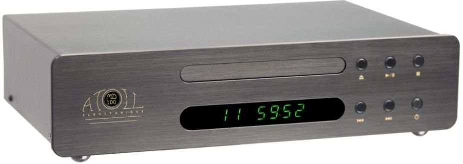 Atoll MD100 to wysokiej klasy odtwarzacz CD. Oprócz standardowego formatu CD Audio urządzenie odtwarza również utwory zapisane w formacie CD-R, CD-RW, MP3. Panel czołowy wykonany został z aluminium o grubości 4 mm, natomiast stalowa obudowa posiada grubość 1.5 mm. Za przekształcanie dźwięku do formy analogowej odpowiedzialny jest konwerter DAC PCM5102. Najważniejsze cechy: odtwarzane formaty: CD Audio, CD-R, CD-RW, MP3 panel czołowy wykonany z aluminium o grubości 4mm stopnie wyjściowe bez kondensatorów pilot w zestawie stopnie wyjściowe pozbawione kondensatorów Funkcjonalność: Odtwarzacz CD to element systemu stereo, który jest źródłem sygnału dla wzmacniacza stereo. Należy podkreślić, że odtwarzacz CD przenosi sygnał wyłącznie dwukanałowy – dlatego nie jest polecany do stosowania z kinem domowy. Jego zaletą jest zdecydowanie wyższa jakość generowanego dźwięku dwukanałowego – niedościgniona dla jakiegokolwiek odtwarzacza Blu-ray/DVD. Nowoczesne odtwarzacze CD często posiadają wejście USB dla plików cyfrowych, ponadto potrafią odtwarzacz pliki audio z nagrywanych płyt CD-R. Niektóre z nich posiadają także funkcje sieciowe ze złączem ethernet, co pozwala na czerpanie muzyki z zewnętrznego serwera.