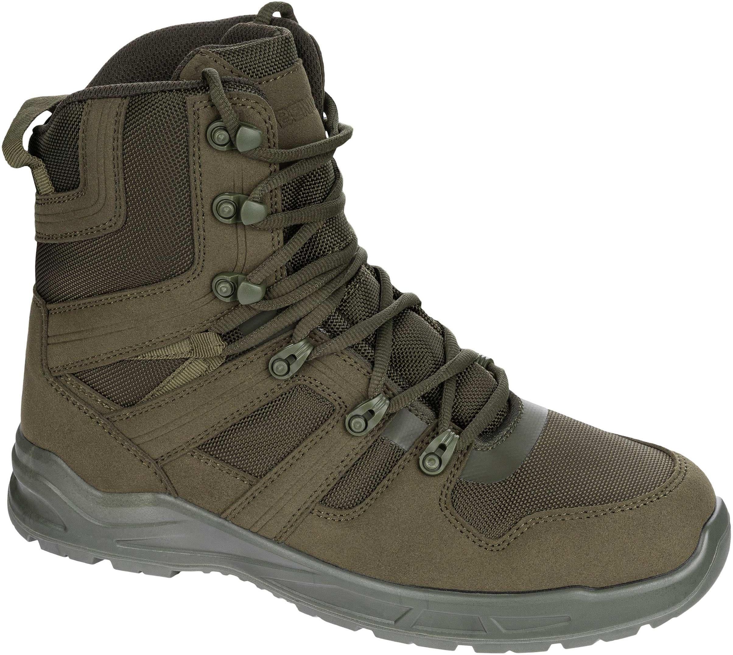 Buty taktyczne z wysoką cholewką w kolorze khaki, wykonane z mikrofibry łączonej z materiałem tekstylnym Oxford. Model spełnia normę EN ISO 20347:2022 O2 SR FO. Sprawdzą się zarówno podczas aktywności w terenie, jak i w codziennym użytkowaniu.