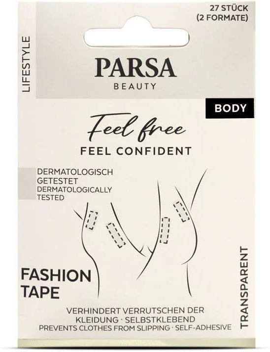 Taśma Fashion to idealne rozwiązanie, aby utrzymać ubrania na miejscu przez cały dzień. Dzięki 27 samoprzylepnym i przezroczystym taśmom w dwóch różnych rozmiarach możesz łatwo i szybko zapobiec zsuwaniu się ubrań lub pokazywaniu ich więcej niż chcesz. Testowana dermatologicznie taśma jest delikatna dla skóry i nie pozostawia śladów ani pozostałości na ubraniach. Przezroczysta taśma jest dyskretna i nadaje się do wszystkich rodzajów odzieży, dzięki czemu możesz czuć się bezpiecznie i pewnie przez cały dzień. Niezależnie od tego, czy chodzi o wieczorne wyjście, czy długi dzień pracy, taśma modowa PARSA zapewni idealne dopasowanie ubrań przez cały dzień. Dzięki temu praktycznemu pakietowi zawsze masz pod ręką rozwiązanie, dzięki czemu możesz skupić się na świetnym wyglądzie, nie martwiąc się o swoje ubrania. Uczyń taśmę modową podstawą swojej garderoby i doświadcz najwyższej wygody i pewności siebie. Zalety Utrzymanie ubrań na miejscu przez cały dzień Zawiera 2 różne rozmiary Łatwa i szybka w użyciu Delikatna dla skóry Nie pozostawia śladów ani pozostałości na ubraniach Kolor jest przezroczysty i pasuje do wszystkich kolorów ubrań Zastosowanie Zawiera 2 różne rozmiary Nakładać na suchą i czystą skórę Jest samoprzylepny