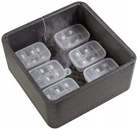 Exo Terra Inkubator Dla Jaj Gadów PRO Z Kontrolą Wilgotoności Klujnik Wylęgarka PT2444 Zestaw zawiera: inkubator nawilżacz USB Precyzyjny inkubator Exo Terra PT2444 W oferowanym inkubatorze wykorzystano technologię termoelektryczną, która umożliwia chłodzenie i ogrzewanie urządzenia. Zakres temperatur wynosi od około 2°C do 60°C, w zależności od temperatury otoczenia. Urządzenie zostało zaprojektowane tak, aby samoczynnie schłodzić się po osiągnięciu optymalnej temperatury, żeby się nie przegrzać i zapobiec utracie jaj z powodu przegrzania i ponownie przełączyć się w tryb ogrzewania, jeśli temperatura spadnie poniżej optymalnej. Pozwala to zapewnić utrzymanie ustawionej temperatury inkubacji przez cały czas. Dzięki dołączonemu nawilżaczowi USB i wbudowanemu higrostatowi, można łatwo zwiększyć wilgotność. Inkubator jest sterowany za pomocą proporcjonalnego termostatu ściemniającego/ impulsowego, dzięki czemu jest niezwykle precyzyjny. Wyposażony został w dwie wysuwane półki umożliwiające łatwy dostęp i manewrowanie. Posiada także przezroczystą pokrywę i wewnętrzne oświetlenie, dzięki czemu można swobodnie obserwować wnętrze. Cechy: cyfrowa kontrola temperatury i wilgotności z czytelnym wyświetlaczem LED ekran LED wyświetla zadany i rzeczywisty poziom temperatury i wilgotności połączenie ogrzewania i nawilżania zakres temperauty od 10°C do 38°C i do 95% RH promiennikowy element grzejny o mocy 55W delikatnie emituje ciepło z góry, symulując naturę higrostat reguluje wilgotność za pomocą nawilżacza USB, który utrzymuje wilgotność na optymalnym poziomie pochylona miska umożliwia skraplanie się wody do zbiornika nawilżacza podwójna wentylacja, zaokrąglone rogi i cienka piankowa warstwa izolacyjna zapewniają stopniowy przepływ powietrza i zapobiegają przeciągom, które mogą powodować zmiany temperatury i wahania wilgotności przezroczysta pokrywa umożliwia łatwe monitorowanie procesu inkubacji i wylęgu bez utraty temperatury i wilgotności izolujące ściany boczne ze styropianu utrzymują stabilną temperaturę utrzymuje ustawienia temperatury i wilgotności w przypadku chwilowej awarii zasilania w zestawie nawilżacz USB Innowacją konstrukcyjną jest możliwość wyboru trybu pracy inkubatora Exo Terra. Do wyboru mamy 3 ustawienia PULSE/ Dimmer (przytłumiony)/ ON/Off. Każdy z tych trybów ma mniej lub bardziej dokładne utrzymanie warunków temperaturowych w komorze lęgowej. Włączenie 2 trybów pracy PULSE (pulsacyjny) i Dimmer zapewnia bardzo dokładną kontrolę temperatury i praktycznie eliminuje wszystkie wahania temperatury. Włączenie trybu ON/OFF powoduje większy zakres temperatur (większe wahania). Przydatne kiedy dany gatunek nie wymaga trzymania reżimu temperaturowego. Rozpoczynasz inkubację? Włącz tryb PULSE. Wartości w tym trybie to: temperatura 30°C, wilgotność względna 75%. Potem możesz przejść na inny tryb pracy. Nawilżacz USB Urządzenie zawiera 1 nawilżacz podłączany USB (w zestawie). Gniazdo USB znajduje się przy sterowniku. Producent zaleca wymianę membrany nawilżacza co 800 godzin pracy. Działa na zasadzie wytwarzania pary, tak jak znane foggery ultradźwiękowe, zamgławia wnętrze i nasyca go wilgocią. Ustawienie wilgotności na poziom 70-75% wydłuża czas pracy membrany nawilżacza. W razie potrzeby można ją dokupić. Jest to część wymienna. Po wymianie membrany nawilżacz USB odzyska swoją żywotność. Ważne: spód inkubatora, gdzie umieścisz nawilżacz musi być cały czas napełniony wodą, przez cały okres inkubacji! Za tworzenie wilgotnego powietrza w komorze inkubacyjnej odpowiedzialne są: higrostat + nawilżacz. Regulator wilgotności mierzy wilgoć i w przypadku jej spadku załącza nawilżacz. Przedstawione na zdjęciach elementy to: 1. Cyfrowy sterownik 2. Wskaźnik temepratury 3. Wskaźnik wilgotności 4. Wybór trybu pracy 5. Grzałka 55W 6. Port USB do podłączenia nawilżacza DANE TECHNICZNE: Grzałka: 55W Wymiary: 44.5 x 44.5 x 24 cm (dł./szer./wys.)