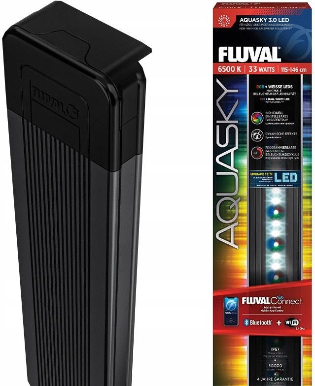 Fluval AquaSky LED 3,0 Oświetlenie do akwarium 33W 115-146,4cm bluetooth Fluval AquaSky LED 3,0 Oświetlenie do akwarium 33W 115-146,4cm bluetooth to nowoczesne oświetlenie akwariowe nowej generacji, które zapewnia pełną kontrolę nad wyglądem dużych zbiorników dzięki możliwości dostosowania kolorów, jasności i efektów świetlnych. Zaawansowane diody RGB z podwójnymi białymi LED pozwalają stworzyć wyjątkową atmosferę w akwarium, podkreślając naturalne barwy ryb i roślin. Inteligentne oświetlenie akwariowe oferuje programowalny 24-godzinny cykl światła, który wiernie odwzorowuje rytm natury od wschodu słońca po nocne światło księżyca. Zalety systemu Fluval AquaSky LED 3.0 Fluval AquaSky LED 3.0 charakteryzuje się obsługą wyłącznie za pomocą aplikacji mobilnej FluvalConnect z wykorzystaniem łączności Bluetooth i Wi-Fi (2.4 GHz), eliminując potrzebę dodatkowych kontrolerów. Dynamiczne efekty świetlne takie jak burza, zachmurzenie, wschód i zachód słońca oraz światło księżyca pozwalają tworzyć realistyczne scenerie wodne. Oświetlenie LED z efektami pogodowymi zostało wyposażone w odporność IP67 zapewniającą wysoką ochronę przed wodą, wilgocią i kurzem, idealną do użytku nad otwartymi zbiornikami. Najważniejsze cechy produktu RGB + podwójne białe diody LED dla pełnej kontroli kolorów Moc 33W dla dużych akwariów 115-146,4 cm Dynamiczne efekty świetlne: burza, zachmurzenie, wschody, zachody Programowalny cykl dobowy 24h z naturalnymi rytmami Sterowanie przez aplikację FluvalConnect via Bluetooth i Wi-Fi Uniwersalne opcje montażu z rozsuwanymi wspornikami Odporność IP67 na wodę, wilgoć i kurz Idealne do akwariów słodkowodnych, roślinnych i paludariów Specyfikacja techniczna Moc: 33W Zakres montażu: 115-146,4 cm Diody: RGB + podwójne białe LED Sterowanie: aplikacja FluvalConnect (Bluetooth + Wi-Fi 2.4 GHz) Klasa wodoodporności: IP67 Materiały: szkło optyczne, aluminiowa obudowa Pochodzenie: niemiecka jakość wykonania Zastosowanie: akwaria słodkowodne, roślinne, paludaria Fluval AquaSky LED 3.0 to wszechstronne rozwiązanie dla akwarystów prowadzących duże akwaria słodkowodne, którzy szukają zaawansowanego systemu oświetlenia z realistycznymi efektami pogodowymi. Dzięki możliwości programowania naturalnych cykli dobowych i dynamicznych efektów świetlnych, system ten tworzy spektakularne scenerie wodne wspierające zdrowie i rozwój mieszkańców akwarium. Niemiecka jakość wykonania z zastosowaniem szkła optycznego i aluminiowej obudowy zapewnia efektywne odprowadzanie ciepła i długotrwałą niezawodność w różnorodnych zastosowaniach akwariowych. Specyfikacja produktu Cecha Wartość Moc 33W Zakres montażu 115-146,4 cm Diody LED RGB + podwójne białe Sterowanie FluvalConnect (Bluetooth + Wi-Fi) Wodoodporność IP67 Materiały Szkło optyczne, aluminium Zastosowanie Akwaria słodkowodne, paludaria Pochodzenie Niemiecka jakość Zawartość zestawu Element Opis Lampa LED 33W Z diodami RGB + białymi Wsporniki rozsuwane 115-146,4 cm Klipsy montażowe Pod pokrywę akwarium Adapter T5/T8 Do zastąpienia starych lamp
