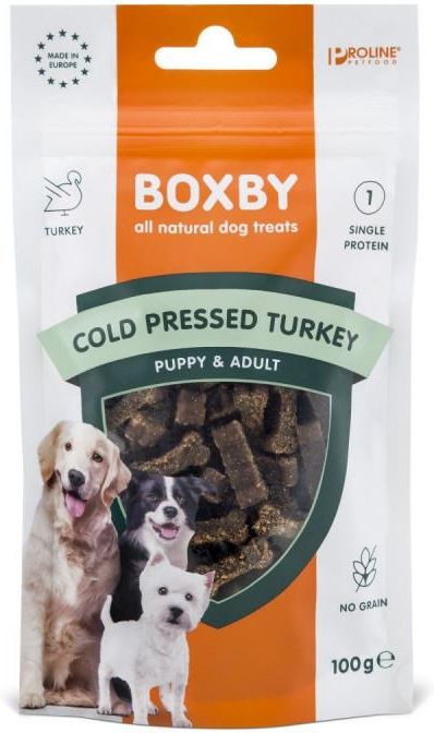 JOHN DOG BOXBY Superfood Cold Pressed Turkey 100g dealne kosteczki treningowe dla szczeniąt i psów małych rasAtuty przysmaki w kształcie kosteczek idealne na trening opakowanie 100 g naturalne z wysoką zawartością mięsa bezzbożowe monoproteinowe tłoczone na zimno polecane także dla szczeniąt …