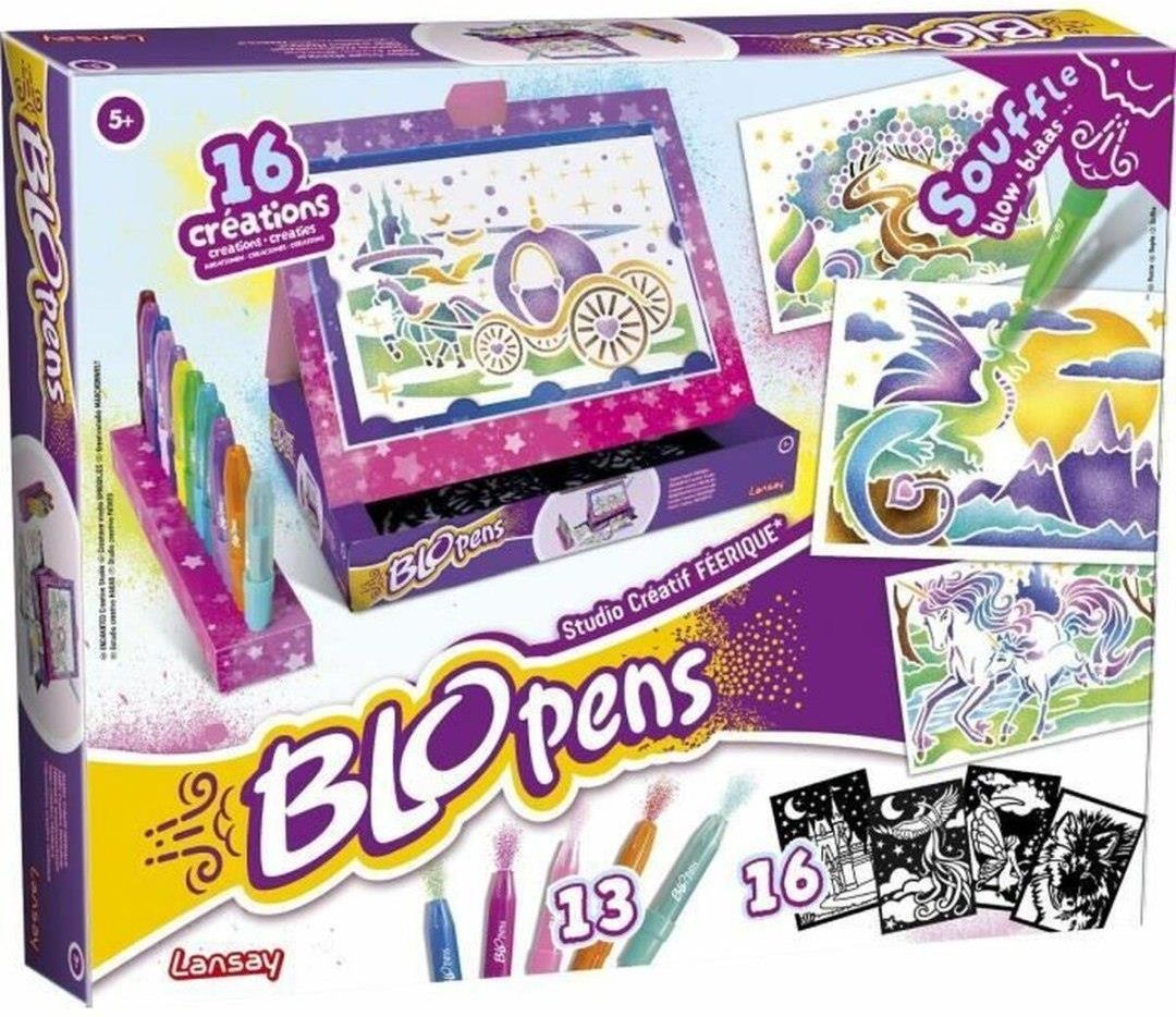Make your own beautiful creations with BLOpens Fantastic Creative Studio. Transform your box into an art easel, pop your Blopens into the holder, and let your creativity flow!​Place your drawing sheet and stencil on the easel, blow into your Blopens, and watch your artwork come to life with a stunning airbrush effect!​Bring your creativity to life with unique stencils to create stunning drawings from the world of fairy tales. 5+ yearsFeatures:Set up your creative studio to ease the make of the artwork.16 creations to make by following stencils16 drawing sheets to make your own creative drawingsBLOpens holder for easy pick of colour and pensContents:1 easel box1 Blopens holder13 Blopens16 stencils16 drawing sheets