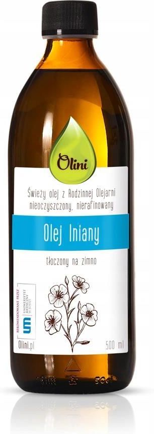 #html-body [data-pb-style=TDNVGHP]{justify-content:flex-start;display:flex;flex-direction:column;background-position:left top;background-size:cover;background-repeat:no-repeat;background-attachment:scroll} Olej lniany Olini 500 ml Olej lniany Olini 500 ml to naturalne wsparcie, gdy chcesz zadbać o serce, cholesterol i dostarczyć organizmowi cennych kwasów omega-3. Olej lniany tłoczony na zimno z polskich ziaren lnu jest nierafinowany, niefiltrowany i powstaje w małych, rzemieślniczych partiach, dzięki czemu zachowuje swój delikatny, orzechowy smak oraz komplet wartości odżywczych. Idealny na zimno – do sałatek, twarogu, kanapek, owsianki czy dań dla całej rodziny. Główne cechy Olej lniany Olini Bogaty w omega-3 54,5 g ALA/100 g – wsparcie prawidłowego cholesterolu. Tłoczony na zimno Wolne tłoczenie w 30–34°C, bez rafinacji i filtracji. Z polskiego lnu Starannie wyselekcjonowane, niepryskane nasiona lnu. Delikatny smak Łagodny, orzechowy smak bez goryczy, także dla dzieci. Dla wegan i dzieci Roślinne źródło omega-3, odpowiednie od niemowlaka. Świeżość i ochrona Małe partie, ciemna szklana butelka, chłodnicze składowanie. Naturalne źródło omega-3 Olej lniany Olini to roślinne źródło kwasów omega-3 i omega-6 w korzystnej proporcji ok. 3,5:1, dzięki czemu świetnie uzupełnia codzienną, zrównoważoną dietę. Zawarty w nim kwas alfa-linolenowy (ALA) i kwas linolowy (LA) pomagają w utrzymaniu prawidłowego poziomu cholesterolu we krwi. Produkt jest wegański, bezglutenowy i sprawdzi się jako alternatywa dla olejów rybnych u dzieci i dorosłych. Szybka specyfikacja • 3 kroki startu Specyfikacja w pigułce Pojemność500 ml Rodzaj oleju100% olej z nasion lnu tłoczony na zimno, nierafinowany Zawartość ALA (omega-3)54,5 g/100 g Kwasy tłuszczowe wielonienasycone70,56 g/100 g Proporcja omega-3 : omega-6około 3,5 : 1 3 kroki startu Krok 1: Przechowuj zamkniętą butelkę w lodówce w temperaturze 4–10°C. Krok 2: Przed użyciem delikatnie wstrząśnij butelką, aby wymieszać naturalny osad. Krok 3: Stosuj olej wyłącznie na zimno, dodając go po przygotowaniu potrawy. Wskazówka: Aby zachować wartości odżywcze oleju lnianego Olini, nie podgrzewaj go i zawsze przechowuj w lodówce, szczelnie zamknięty, z dala od światła. Świeżość i delikatny smak Olej lniany Olini zaskoczy Cię delikatnym, orzechowym smakiem bez goryczy, który łatwo wkomponujesz w codzienne posiłki. Dzięki tłoczeniu w małych, rzemieślniczych partiach i butelce z ciemnego, grubego szkła dostajesz produkt wyjątkowo świeży i dobrze chroniony przed światłem. Naturalny osad świadczy o braku filtracji i minimalnej obróbce, a łagodny profil smakowy sprawia, że chętnie sięgają po niego także dzieci, osoby na diecie roślinnej czy początkujący w zdrowym odżywianiu. Najczęstsze pytania (FAQ) Jak stosować olej lniany Olini na co dzień? Stosuj olej wyłącznie na zimno. Możesz pić go prosto z łyżeczki, polewać nim sałatki, dodawać do twarogu, owsianki, smoothie, gotowanych warzyw czy gotowych zup. Świetnie sprawdzi się też zamiast masła na pieczywie. Nie używaj go do smażenia, pieczenia ani innych form obróbki termicznej. Czy olej lniany Olini nadaje się dla dzieci i niemowląt? Tak, olej lniany Olini może być podawany dzieciom i niemowlętom na etapie rozszerzania diety, także metodą BLW. Wystarczy dodać kilka kropel do posiłku, np. warzyw, kaszki czy papki. W przypadku niemowląt i małych dzieci dawkę zawsze warto skonsultować z pediatrą lub dietetykiem. Jak prawidłowo przechowywać olej lniany Olini? Olej lniany Olini przechowuj w lodówce w temperaturze 4–10°C, zarówno przed, jak i po otwarciu. Butelka powinna być szczelnie zamknięta i chroniona przed światłem. Nie trzymaj oleju w pobliżu źródeł ciepła ani na nasłonecznionym blacie, bo przyspiesza to jego utlenianie. Czy naturalny osad w oleju lnianym jest wadą produktu? Nie, osad jest naturalnym zjawiskiem i wynika z faktu, że olej lniany Olini jest niefiltrowany i niepodgrzewany. Świadczy to o jego minimalnym przetworzeniu. Przed użyciem wystarczy delikatnie wstrząsnąć butelką, aby składniki równomiernie się rozprowadziły. Czy olej lniany Olini jest odpowiedni dla wegan i osób na diecie bezglutenowej? Tak, produkt jest w 100% roślinny i naturalnie wegański. Jest również wolny od glutenu. To dobre roślinne źródło kwasów omega-3 dla osób, które nie jedzą ryb ani produktów odzwierzęcych lub ograniczają je z powodów zdrowotnych, smakowych czy światopoglądowych. Czy olej lniany Olini nadaje się do diety dr Budwig? Tak, olej lniany Olini spełnia wymagania diety dr Budwig, ponieważ zawiera ponad 50% kwasu alfa-linolenowego (ALA) – dokładnie 54,5 g/100 g. Można łączyć go z twarogiem lub innymi składnikami zgodnie z zasadami tej diety, zawsze stosując produkt na zimno. Składniki100% olej z nasion lnu tłoczony na zimnoWartość odżywczaw 100 gWartość energetyczna3700 kJ / 900 kcalTłuszcz100 g– w tym kwasy tłuszczowe nasycone9,2 g– w tym kwasy tłuszczowe jednonienasycone16 g– w tym kwasy tłuszczowe wielonienasycone75 gWęglowodany0 g– w tym cukry0 gBiałko0 gSól0 gZawieraKwas linolenowy ALA (omega-3)54,5 gKwas linolowy LA (omega-6)14,9 gInformacje dla alergikówMoże zawierać śladowe ilości sezamu, gorczycy, orzechów. Nie zawiera glutenu.PrzechowywanieOlej lniany należy przechowywać w lodówce (w temperaturze około 4–10°C), zarówno przed, jak i po otwarciu. Przeznaczony do spożywania wyłącznie na zimno.