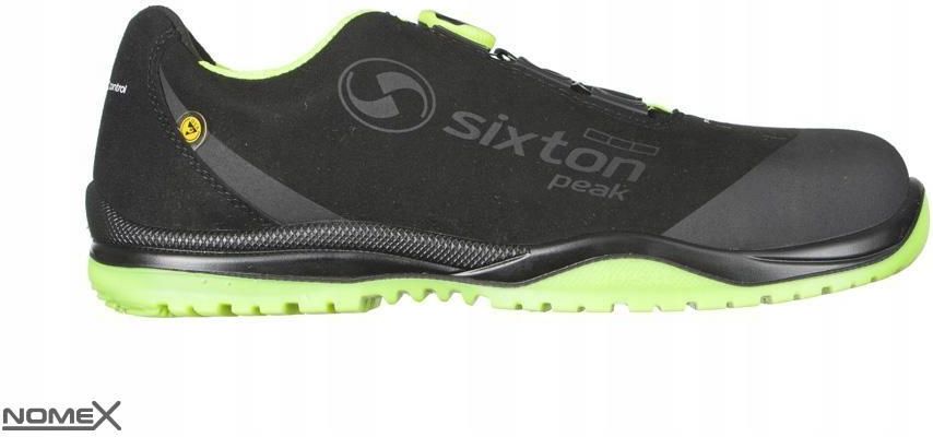 Klasa ochrony S3 SRC ESD - podnosek aluminiowy, wkładka antyprzebiciowa w podeszwie ze specjalnego włókna. Cholewka - Micro FibreSuede to innowacyjna mikrofibra przeznaczona specjalnie dla branży obuwia ochronnego. Jest wynikiem badań, które pozwoliły osiągnąć wysoką odporność na zużycie, jest synonimem przyjemnego w dotyku. Jest miękka, oddychająca i wyjątkowo wygodna. Mikrowłókna Sixton są wyjątkowo wytrzymałe. Na czubku palca jest chroniona przez pro-tech sxt, aby z czasem zwiększyć odporność cholewki. Nowa podszewka „3D Air AX” Sixton wybiera najlepsze materiały. Nowoczesne włókna gwarantują najlepszą możliwą wydajność nawet w obuwiu, co jest mniej widoczne, ale jest tak ważne dla dobrego samopoczucia stopy. Nowa podszewka 3D Air Axe jest wynikiem połączenia dwóch technicznych przędz: Amicor i Coolmax. Podeszwa z podwójnego PU, ESD i SRC - antypoślizgowa. wróć do kategorii