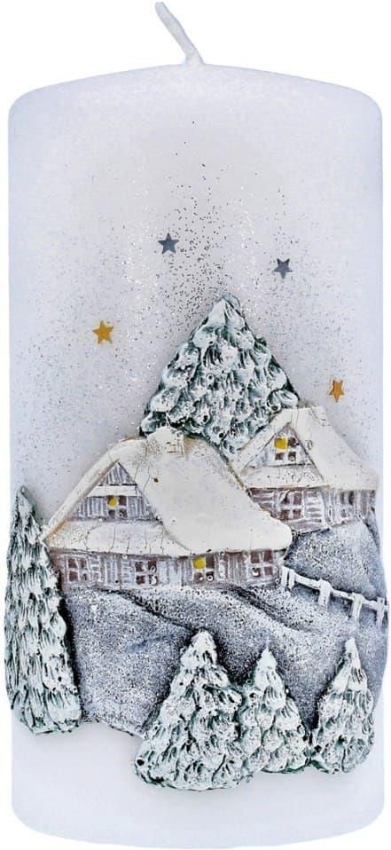 Swiece Artman Boże Narodzenie Świeca Ozdobna Zimowy Domek Walec Średni Biały 1szt 206623 Pleszew