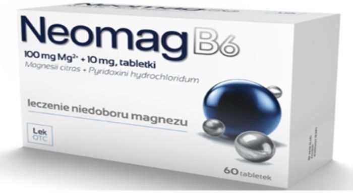 NeomagB6 (100 mg Mg2+ + 10 mg) Lecenie niedoboru magnezu, 60 tabletek Magnesii citras + Pyridoxini hydrochloridum To jest lek. Dla bezpieczeństwa stosuj go zgodnie z ulotką dołączoną do opakowania. Nie przekraczaj maksymalnej dawki leku. W przypadku wątpliwości skonsultuj się z lekarzem lub farmaceutą. Ulotka dołączona do opakowania: informacja dla pacjenta NeomagB6, 100 mg Mg2+ + 10 mg, tabletki Magnesii citras + Pyridoxini hydrochloridum Należy uważnie zapoznać się z treścią ulotki przed zażyciem leku, ponieważ zawiera ona informacje ważne dla pacjenta. Lek ten należy zawsze przyjmować dokładnie tak, jak to opisano w tej ulotce dla pacjenta lub według zaleceń lekarza lub farmaceuty. Należy zachować tę ulotkę, aby w razie potrzeby móc ją ponownie przeczytać. Jeśli potrzebna jest rada lub dodatkowa informacja, należy zwrócić się do farmaceuty. Jeśli u pacjenta wystąpią jakiekolwiek objawy niepożądane, w tym wszelkie objawy niepożądane niewymienione w tej ulotce, należy powiedzieć o tym lekarzowi lub farmaceucie. Patrz punkt 4. Jeśli po 30 dniach nie nastąpiła poprawa lub pacjent czuje się gorzej, należy skontaktować się z lekarzem. 1. Co to jest lek NeomagB6 i w jakim celu się go stosuje Lek NeomagB6 zawiera dwie substancje czynne: jony magnezowe i witaminę B6 (pirydoksyny chlorowodorek). Lek uzupełnia niedobory magnezu, a witamina B6 zwiększa jego wchłanianie w organizmie. Magnez jest kationem niezbędnym do prawidłowego przebiegu wielu biochemicznych procesów w organizmie. Jego biologiczna rola polega na aktywacji szeregu enzymów. Magnez odgrywa istotną rolę w procesie skurczu mięśnia sercowego, wpływa na stan pobudliwości nerwowo-mięśniowej. Niedobór magnezu może powodować zaburzenia w układzie mięśniowym i ośrodkowym układzie nerwowym. Witamina B6 zwiększa wchłanianie magnezu z przewodu pokarmowego o 20-40%. Lek jest wskazany do stosowania w przypadku niedoboru magnezu. Występowanie wymienionych poniżej objawów może wskazywać na niedobór magnezu: - nerwowość, drażliwość, wahania nastroju, łagodny lęk, niepokój, przejściowe uczucie zmęczenia, ospałość, zaburzenia snu o niewielkim nasileniu; - objawy lękowe, takie jak skurcze przewodu pokarmowego lub kołatanie serca (bez zaburzeń serca); - skurcze mięśni, mrowienie, drganie powiek. Uzupełnienie magnezu może złagodzić powyższe objawy niedoboru. Lek należy stosować po wykluczeniu innych przyczyn tych objawów, niż niedobór magnezu oraz w sytuacji, gdy nie można osiągnąć poprawy lub zwiększyć podaży magnezu poprzez odpowiednią dietę. Jeśli po 30 dniach stosowania leku NeomagB6 nie nastąpi poprawa, kontynuowanie leczenia nie jest zalecane. 2. Informacje ważne przed przyjęciem leku NeomagB6 Kiedy nie przyjmować leku NeomagB6 - jeśli pacjent ma uczulenie na magnezu cytrynian, pirydoksyny chlorowodorek lub którykolwiek z pozostałych składników tego leku (wymienionych w punkcie 6); - jeśli pacjent ma ciężką niewydolność nerek (klirens kreatyniny mniejszy niż 30 mL/min.); - jeśli pacjent jednocześnie przyjmuje lewodopę (lek stosowany w chorobie Parkinsona); - jeśli u pacjenta stwierdzono hipermagnezemię (zwiększone stężenie magnezu we krwi); - jeśli u pacjenta stwierdzono blok przedsionkowo-komorowy; - jeśli u pacjenta stwierdzono chorobę zwaną myasthenia gravis (nabyta, przewlekła choroba, charakteryzująca się szybkim zmęczeniem i osłabieniem mięśni szkieletowych); - u dzieci w wieku poniżej 6 lat (o masie ciała poniżej 21 kg). Ostrzeżenia i środki ostrożności Przed rozpoczęciem przyjmowania leku NeomagB6 należy omówić to z lekarzem lub farmaceutą. - Jeśli u pacjenta stwierdzono jednoczesny niedobór magnezu i wapnia, w pierwszej kolejności należy uzupełnić niedobór magnezu. - Jeśli u pacjenta występuje ciężki niedobór magnezu oraz zaburzenia wchłaniania, leczenie należy rozpocząć od dożylnego podawania magnezu. - Jeśli pacjent ma umiarkowaną niewydolność nerek należy zachować szczególną ostrożność, ze względu na ryzyko wystąpienia podwyższenia stężenia magnezu we krwi. Przyjmowanie leku w dawce wyższej niż zalecana może powodować biegunkę. Długotrwałe stosowanie magnezu może prowadzić do zwiększenia stężenia potasu we krwi, szczególnie u pacjentów z kontrolowanym spożyciem potasu i osłabioną czynnością nerek. W przypadku przyjmowania wysokich dawek leku (dotyczy witaminy B6) przez długi czas mogą wystąpić problemy ze strony nerwów, takie jak uczucie mrowienia (patrz punkt 3: „Przyjęcie większej niż zalecana dawki leku NeomagB6”). Dzieci Leku nie należy stosować u dzieci w wieku poniżej 6 lat (o masie ciała poniżej 21 kg). Lek NeomagB6 a inne leki Należy powiedzieć lekarzowi lub farmaceucie o wszystkich lekach przyjmowanych przez pacjenta obecnie lub ostatnio, a także o lekach, które pacjent planuje przyjmować. Należy poinformować lekarza lub farmaceutę, jeżeli pacjent przyjmuje którykolwiek z następujących leków, ponieważ mogą one powodować niedobór magnezu i (lub) witaminy B6 poprzez m.in. zwiększenie ich wydalania z organizmu lub osłabienie wchłaniania: - amfoterycyna B (lek stosowany w leczeniu ciężkich układowych grzybic); - bifosfoniany (leki stosowane w leczeniu osteoporozy); - izoniazyd, cykloseryna (leki stosowane w leczeniu gruźlicy); - penicylamina (lek stosowany w leczeniu reumatoloidalnego zapalenia stawów i zatruć metalami ciężkimi); - cyklosporyna A, rapamycyna (leki stosowane w transpantologii); - leki moczopędne (np. tiazydy lub furosemid); - cisplatyna, cetuksymab lub erlotynib (leki stosowane w leczeniu nowotworów); - inhibitory pompy protonowej (leki stosowane w leczeniu zgagi, takie jak pantoprazol czy omeprazol); - foskarnet (lek przeciwwirusowy); - pentamidyna (lek stosowany w leczeniu zakażeń pasożytniczych lub zakażeń płuc); -hydralazyna (lek stosowan