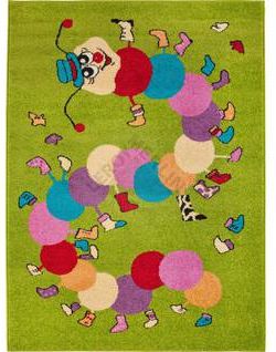 Dywan dziecięcy IwoLimonka z kolekcji Funky Dywan dla dzieci Iwo w kolorze limonkowym (soczystej zieleni)przedstawia wielką śmieszną i wiecznie uśmiechniętą gąsienicę :) Dzieci zachwyca możliwość zabawy na nim, ponieważ wzór ma ciekawe okrągłe kształty i patrząc na ich zabawy, wiecznie skaczą na tym cudnym i kolorowym robaczku :) Dywany dla dzieci, które uwielbiająkolorowy świat Kolorowy dywan, który przyciąga wzrok, w szczególności naszych kochanych pociech sprawi, że pokój dziecięcy nabierze zupełnie nowego wyglądu. Wysoka jakość przędzy Dobrej jakości dywan to podstawowy dla wielu kupujących parametr, jakim się powinien charakteryzować zakupowanyprodukt. Produkt pochodzi z fabryki o bardzo długich tradycjach tkania. Wysoka jakość przędzy oraz samego produktu jest gwarantowana. Dywany pokojowe dla maluszka. Oryginalne wzornictwo Fabryka dywanów Agnella zatrudnia wykwalifikowany personel. Na wielką uwagę zasługują w szczególności projektanci wzorów - osoby wykształcone na łódzkiej ASP (kierunek wzornictwo przemysłowe) a także pracownicy produkcyjni o bardzo długim stażu pracy. Charakterystyka techniczna dywanu: Rodzaj przędzy: Heat-Set Fryz Super gruby i super gęsty dywan! Wysokość włosa: 8 mm (+- 1 mm) Waga dywanu: 1,9 kg/m2 (+- 5%) Gęstość dywanu: 104 000 pęczków (+- 5%) Kolory w dywanie: turkus, krem, róż, fiolet, szary, limonka, pomarańcz, czerwień, czerń Kraj pochodzenia: POLSKA - Agnella Białystok