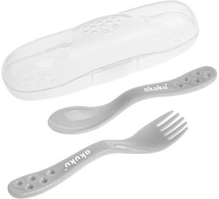 Sztuśce do jedzenia dla dzieci w kolorze szarym, w bezbarwnym etui.
