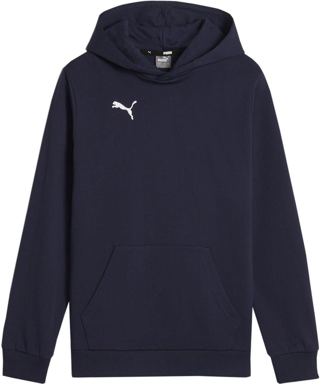 Bluza dla dzieci Puma Team Goal Casuals Hoddy granatowa 658619 06 Właściwości Bluza Puma przeznaczona dla dzieci sprawdzi się na co dzień i podczas treningów. Regularny krój. Miękki materiał. Obszerny kaptur bez regulacji. Regularny krój wykończony ściągaczami. Duża kieszeń na froncie. Niewielkie logo. Linia Team Goal. Materiał główny 100% bawełna