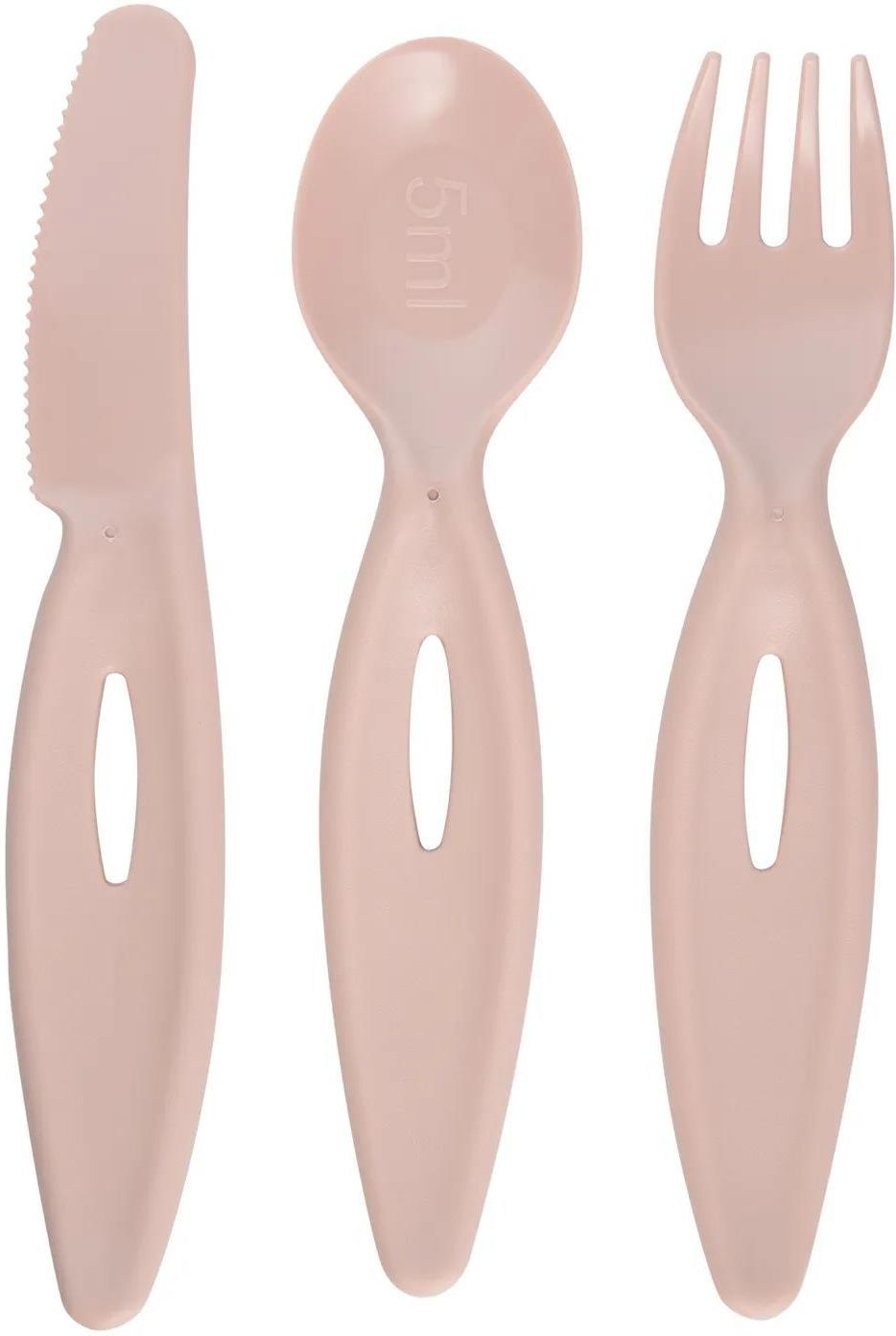 Pierwszy zestaw sztućców jest doskonałym wyborem dla dzieci, które chcą bezpiecznie ćwiczyć samodzielne jedzenie. Zestaw zawiera widelec, nóż i łyżkę. Sztućce posiadają szerokie uchwyty, które ułatwiają dziecku trzymanie. Zaokrąglone brzegi sztućców nie podrażniają dziąseł dziecka. Nóż z delikatnymi ząbkami jest bezpieczny do nauki samodzielnego krojenia. Zestaw sztućców dla dzieci jest rekomendowany dla dzieci powyżej 12 miesiąca życia. Praktyczny zestaw sztućców dla niemowlaka można myć w zmywarce. Szerokie uchwyty ułatwiają dziecku trzymanie – idealne do nauki samodzielnego jedzenia. Zaokrąglone brzegi sztućców nie podrażniają dziąseł dziecka. Nóż z delikatnymi ząbkami jest bezpieczny do nauki samodzielnego krojenia. Zestaw zawiera: widelec, nóż i łyżeczkę. Przeznaczony dla dzieci powyżej 12. miesięcy. Można myć w zmywarce (max. 60°C). Nie można gotować, dezynfekować i używać w kuchence mikrofalowej. Można polewać wrzątkiem. Produkt wolny od BPA. Jak używać: Sztućce utrzymuj w czystości. Przed pierwszym i każdym kolejnym użyciem myj w ciepłej wodzie z delikatnym środkiem myjącym. Dokładnie wypłucz. Czyścić dokładnie przed każdym użyciem aby zapewnić higienę. Unikaj szorstkich rysujących powierzchnię narzędzi. Polej wrzątkiem. Nie gotuj. Nie sterylizuj. Produkt można myć w zmywarce (max. temp. 65°C). Produkt nie nadaje się do użycia w kuchenkach mikrofalowych. Produktu nie należy umieszczać w nagrzanym piekarniku ani ogrzewać na kuchence gazowej bądź elektrycznej. Nie zostawiać produktu w miejscu nasłonecznionym lub gorącym, ponieważ może to spowodować jego osłabienie. Uwaga! Produkt nie jest zabawką. Przechowuj go w miejscu niedostępnym dla dziecka. Dla bezpieczeństwa i zdrowia Twojego dziecka. Ostrzeżenie! Zawsze używać wyrobu pod nadzorem dorosłych. Wyrób sprawdzić przed każdym użyciem. W przypadku pierwszych oznak zniszczenia lub zużycia-wyrzucić. Zawsze sprawdzać temperaturę pokarmu przed karmieniem.