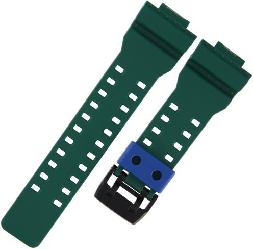 Pasek pasuje do wszystkich zegarków CASIO z początkiem symbolu: GA-700 / GA-710 / GA-735 / Oryginalny pasek CASIO 10649560 do zegarka: GA-700SC-3A / Pasek / Bransoleta: Rodzaj - PASEK Materiał - TWORZYWO SZTUCZNE Kolor - ZIELONY Mocowanie - PROFILOWANE Zapięcie: Rodzaj - KLAMERKA Materiał - TWORZYWO Kolor - CZARNY Szerokość: przy mocowaniu - 16mm przy klamerce - 22mm Długość: część z klamerką - 80mm* część z dziurkami - 130mm* *Zaokrąglenie pomiarów ( 5mm ; +/-2mmΔX)