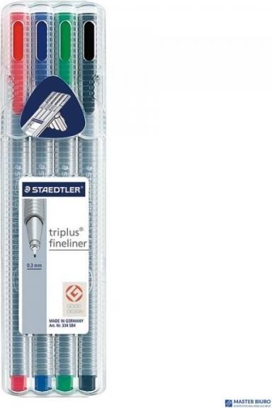 Cienkopis Triplus Fineliner 4 kolory Staedtler Stylowy cienkopis biurowy o ergonomicznej, trójkątnej obudowie zapewniającej niebywały komfort i wygodę w trakcie pisania. Posiada precyzyjną, cienką końcówkę wzmocnioną metalową obudową, oraz unikalny atrament (na bazie wody) wsparty formułą DRY SAFE, …