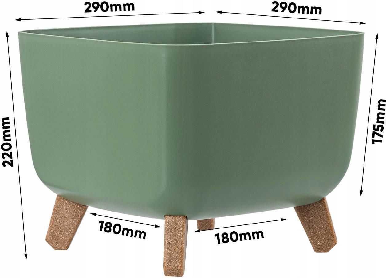 Doniczka na nóżkach Gracia Square DGQL300 Zielona Ziemisty zielony Doniczka, która idealnie zwiększy prezencję zasadzonych w niej roślin. Kwadratowa donica wykonana z mocnego tworzywa sztucznego, odpornego na uszkodzenia mechaniczne oraz związki chemiczne zawarte w nawozach. Jej klasyczne kształty idealnie wkomponowują się w większość kompozycji na zewnątrz jak i w pomieszczeniach. Wyposażona została w 4 wpinane nóżki wdzięcznie imitujące wykonanie z drewna. Jej dodatkową cechą jest wyjmowana wkładka ułatwiająca utrzymanie odpowiedniego nawodnienia. Skład oferty: 1 szt. - Doniczka Gracia Square. 4 szt. - Wpinana nóżka. 1 szt. - Wkładka na dno doniczki. CECHY CHARAKTERYSTYCZNE: Odponość chemiczna - Wykazuje odporność na związki chemiczne zawarte w nawozach. Odpronośc na uszkodzenia - Wykazuje odporność na wzgniecenia, uszkodznia mechaniczne. Odproność na czynniki zewnętrzne - Wykazuje odporność na wilgoć, pormineiowanie UV. Wyjmowana wkładka - Wkładka ułatwiająca odpowiednie nawodnienie. Wyjmowane nóżki - Łatwo montowalne, doniczkę można postawić na nich jak również bezpośrednio na ziemi. Elegancki design - Idealnie nada się jako uzupełnienie różnych kompozycji zewnętrznych jak wewnętrznych. Dane Techniczne Rozmiar: DGQL300 Wysokość: 220 mm Długość: 290 mm Szerokość: 290 mm Kod producenta: DGQL300-5615C GALERIA MODELU Zdjęcia mogą prezentować różną kolorystykę modelu. Ta oferta dotyczy koloru z miniaturki: Ziemisty zielony