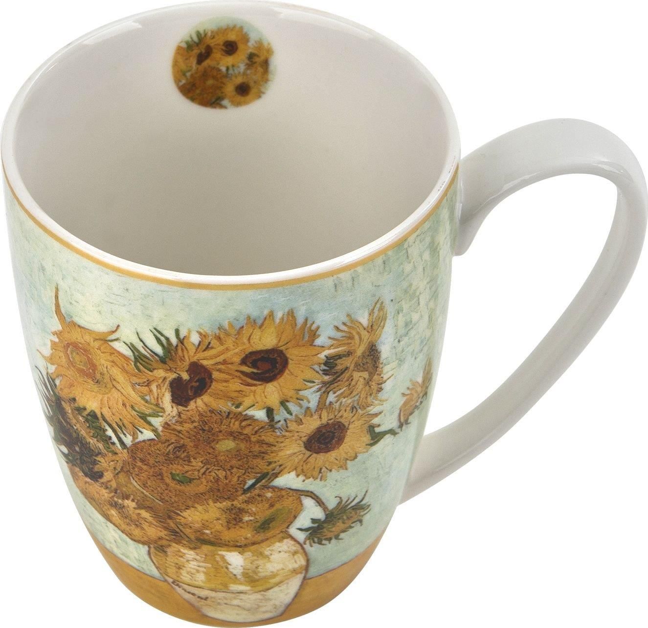 Kubek Duo Bullet Sunflowers 380 ml Porcelanowy, klasyczny kubek o pojemności 380 ml firmy DUO zdobiony motywem twórczości Vincenta Van Gogha. Kubek zapakowany jest w piękne, zdobione pudełko. Możliwość mycia w zmywarce: tak Możliwość stosowania w kuchence mikrofalowej: tak Szerokość (cm): 12 Wysokość (cm): 10 Głębokość (cm): 8 Waga (kg): 0,4 Pojemność (ml): 380 nr katalogowy (307997)