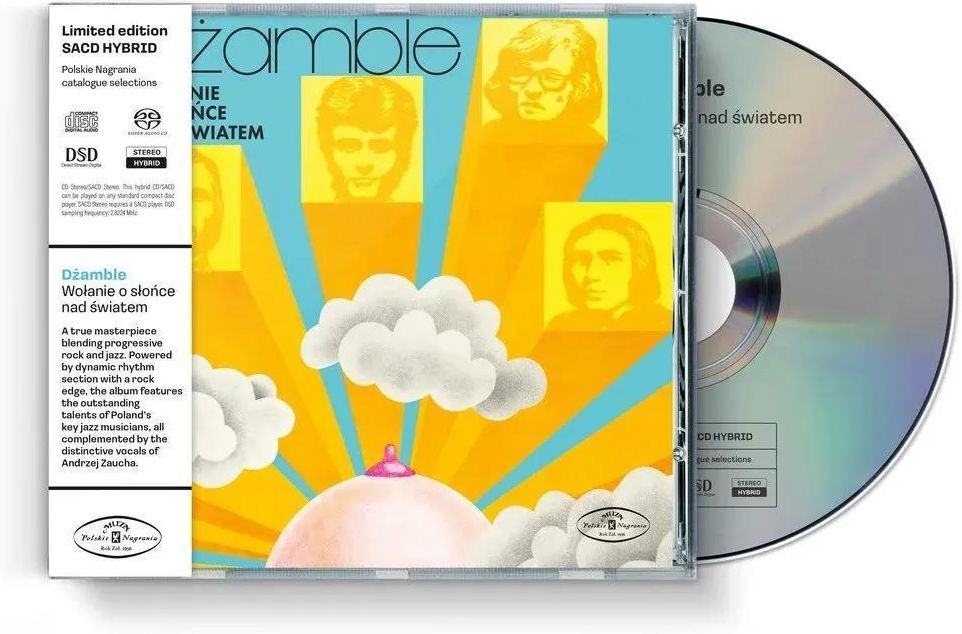 DŻAMBLE - WOŁANIE O SŁOŃCE NAD ŚWIATEM (SACD) EAN: 5054197887352 Album Dżambli „Wołanie o słońce nad światem” (SACD Hybrid) wydany w limitowanym nakładzie, w cyklu „Polskie Nagrania catalogue selections”. Jest to pierwsza w Polsce edycja tej płyty zrealizowana w formacie SACD (Super Audio Compact …