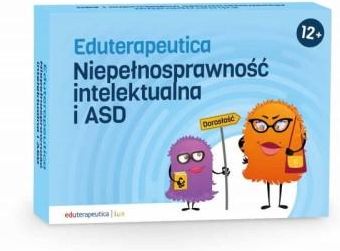Zastosowanie pakietu Niepełnosprawność Intelektualna i ASD 15+: SPE, młodzież i dorośli z ASD, koncentracja i uwaga, uczniowie i dorośli z niepełnosprawnością intelektualną, doskonalenie komunikacji, praca w zespole, rozwijanie kompetencji emocjonalnych i społecznych, organizacja i planowanie. Dla kogo? Publikacja skierowana jest dla młodzieży i dorosłych osób z niepełnosprawnością i ASD. Pedagodzy specjalni, nauczyciele i terapeuci mogą wykorzystać karty pracy podczas zajęć rewalidacyjnych w szkołach i innych ośrodkach. Przygotowane materiały sprawdzą się również podczas zajęć z funkcjonowania osobistego i społecznego oraz zajęć rozwijających umiejętność komunikowania się. Dużym atutem jest możliwość wykorzystania ich podczas działań praktycznych np. podczas spotkań z reprezentantami różnych zawodów. Jakie korzyści płyną z użytkowania produktu? Publikacja umożliwia dodatkowo praktyczne wykorzystanie udoskonalonych umiejętności komunikowania się np. podczas wyjść do różnorodnych miejsc użyteczności publicznej w ciągu roku szkolnego. Proponowane materiały terapeutyczne pomagają zwiększyć samodzielność, autonomię i poszerzyć wiedzę o otaczającym świecie osobom z ASD i niepełnosprawnością intelektualną. Na jakie potrzeby odpowiada Eduterapeutica lux Niepełnosprawność Intelektualna i ASD 15+? Umożliwia zwiększenie samodzielności, poprzez wcześniejsze przybliżenie, przećwiczenie i omówienie sytuacji, w których osoby z ASD i niepełnosprawnością intelektualną mogą się znaleźć, na co dzień. Przybliża tematy w sposób usystematyzowany, pozwalając na korzystanie z niego w dowolnych konfiguracjach przez osoby współpracujące z osobami z ASD i niepełnosprawnością intelektualną. Materiały mogą stać się podstawą do przejścia do praktycznych działań związanych z wprowadzeniem osoby w coraz szerszy zakres umiejętności społecznych i samoobsługowych. Trwały materiał i wysoka jakość wykonania umożliwia korzystanie z materiałów przez osoby z trudnościami z napięciem mięśniowym czy regulowaniem emocji. Publikacja zawiera propozycje zadań i aktywności o różnym stopniu trudności, umożliwiając korzystanie z nich przy współpracy z osobami przejawiającymi różny stopień zaburzeń sfery poznawczej, społecznej czy komunikacyjnej. Uwzględnienie podstawy programowej dla uczniów w szkole podstawowej z niepełnosprawnością intelektualną w stopniu umiarkowanym i znacznym oraz szkół przysposabiających do pracy. Różnorodność tematyczna umożliwia wykorzystywanie materiałów podczas nauczania w środowisku naturalnym, związanym z aktualnymi potrzebami i wyzwaniami, przed jakimi stoją osoby z ASD i niepełnosprawnością intelektualną. Poruszanie w materiałach wielu tematów daje możliwość na rozwijanie pewnych zainteresowań osób, z którymi współpracujemy np. dotyczących zawodów czy miejsc użyteczności publicznej. Nowatorskie podejście do tematyki samodzielności osób z niepełnosprawnością sprzężoną opracowane przez terapeutki, które podczas codziennej pracy współpracują z osobami z ASD i niepełnosprawnością intelektualną. Zestaw zawiera: poradnik ze wskazówkami, jak w efektywny sposób pracować za pomocą materiałów zawartych w publikacji, karty pracy dotyczące czternastu obszarów samodzielnego funkcjonowania – ogółem jest ponad 150 kart (karty pracy są wydrukowane oraz dostępne do wydruku na platformie Educhmura.pl ), gra planszowo-karciana W mieście podsumowująca zdobyte umiejętności. Produkt opiera się na ponad 150 kartach pracy, podzielonych na 14 obszarów tematycznych, które przygotowują i wprowadzają do samodzielnego podejmowania działań. Obszary tematyczne: Dom Szkoła Sklep Restauracja/kawiarnia Kino Basen Urząd Transport Przychodnia Apteka Stomatolog Fryzjer Biblioteka Bezpieczeństwo Karty pracy zawierają m.in. gry słowne, gry obrazkowe, rebusy, zagadki, wycinanki obrazkowe. Gra planszowo-karciana W mieście wraz z instrukcją, której celem jest podsumowanie informacji zebranych w czasie nauki poszczególnych umiejętności.