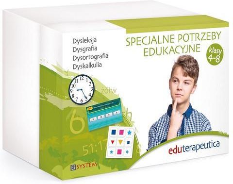 Eduterapeutica lux SPE 4-8 to program multimedialny, który wzbudza zainteresowanie uczniów. Motywuje ich do aktywnego udziału w zajęciach terapii pedagogicznej i systematycznego treningu. Kategoria wiekowa: 10-15 lat Typ wersji: Pakiet (program multimedialny + pomoce tradycyjne) Licencja: pendrive - otwarta, bezterminowa; kod do educhmury - na 5 lat, jednostanowiskowa Zestaw Eduterapeutica lux SPE 4-8 zawiera: blisko 565 ćwiczeń multimedialnych – interaktywnych ćwiczeń, gier edukacyjnych, nawiązujących do znanych gier komputerowych, 442 wydrukowanych kart pracy dostępnych również w programie, poradnik metodyczny z instrukcją obsługi, poradnik dla rodziców, długopis Banach 3D z kartami pracy oraz materiałem do tworzenia modeli. Korzyści dla nauczyciela, pedagoga i nauczycieli przedmiotowych: otrzymasz gotowy materiał na zajęcia terapeutyczne, na cały rok szkolny, zaopatrzysz się różnorodne materiały i inspiracje związane z dostosowaniem toku lekcji do danego ucznia, zadań domowych, ale także zadań sprawdzających, z łatwością zaplanujesz przebieg terapii, z podziałem na etapy i obszary, dobierzesz karty pracy i ćwiczenia multimedialne do obszarów, w jakich zaobserwujesz trudności, zdobędziesz informację na temat poszczególnych trudności ucznia ze SPE, sposobów diagnozowania, prowadzenia terapii oraz jej postępów, zaangażujesz uczniów i całą grupę do zajęć, nauczysz uczniów koncentracji na zadaniu, osiągniesz widoczne efekty swojej pracy pedagogicznej. Korzyści dla ucznia: weźmie udział w atrakcyjnych zajęciach, zmotywuje się do systematycznego treningu i wykonywanych żmudnych zadań, zmobilizuje się do lepszej pracy i osiągania lepszych wyników w terapii i nauce, nauczy się nowych umiejętności, z łatwością przyswoi wiedzę, podniesie swoją samoocenę dzięki widocznym sukcesom podczas wykonywania ćwiczeń i w trakcie całego procesu terapeutycznego, lepiej zafunkcjonuje w grupie rówieśniczej, poprawi się jego współpraca z nauczycielem. Wymagania techniczne Wersja na pendrive (licencja otwarta i bezterminowa): komputer z systemem operacyjnym: Windows 7/8/10/11 oraz wyższe wersje lub Mac OS, przeglądarka internetowa (zalecamy Google Chrome lub Opera), głośniki, mikrofon, port USB typu A. Numer 1 w terapii - Eduterapeutica lux: Możliwość prowadzenia terapii na różnych urządzeniach: komputerze, laptopie, tabletach oraz ekranach dotykowych. Nowość! Możliwość pobrania ćwiczeń interaktywnych i przesłanie ich uczniowi za pomocą wiadomości e-mail. Licencja otwarta pozwala na zainstalowanie programu na dowolnej liczbie urządzeń – dostęp do programu dla całej kadry pedagogicznej i wszystkich uczniów. Możliwość pracy z uczniem w klasie i gabinecie, a także na odległość. Bezpłatne wsparcie merytoryczne, techniczne. Dostęp do bezpłatnych i certyfikowanych webinarów merytorycznych.