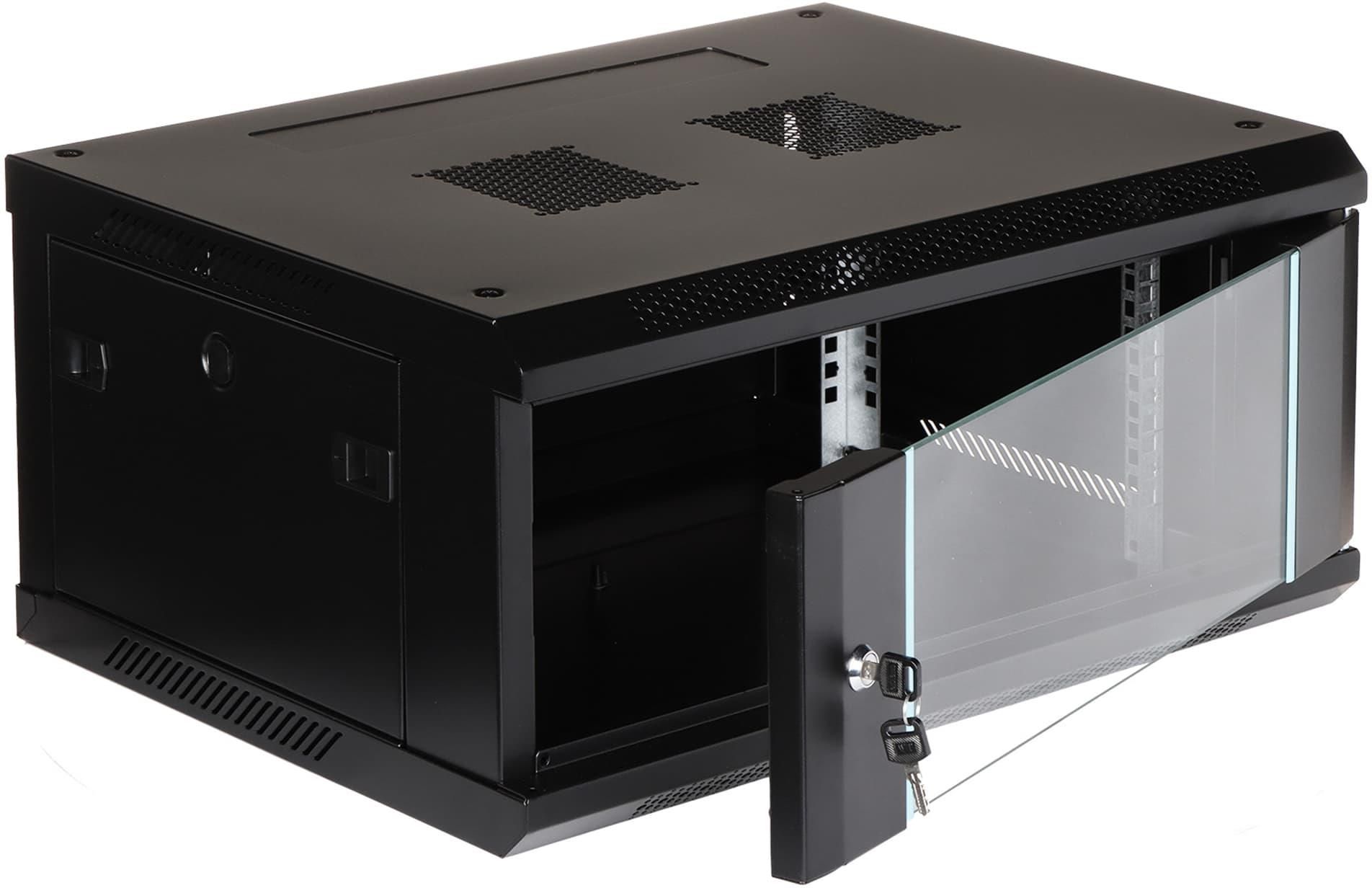 SZAFA RACK WISZĄCA EPRADO-R19-4U/450-BLUE Coraz częściej domowe urządzenia do instalacji LAN, RTV, CCTV wykonywane są z myślą o systemie RACK, tak aby ich montaż był estetyczny oraz aby urządzenia były zabezpieczone przed niepowołanym dostępem i uszkodzeniami mechanicznymi. Szafa EPRADO-R19-4U/450-BLUE przeznaczona jest do montażu urządzeń z obudową w standardzie 19". Do tego należy wykorzystać półki montowane do szafy RACK. Szafa RACK posiada wiele otworów wentylujących zapewniając odpowiedni obieg powietrza. Dodatkowo jest możliwość zainstalowania wentylatorów mających na celu zapewnienie odpowiedniego chłodzenia w szafie. Szerokość wewnętrzna: 19 " Wysokość wewnętrzna: 4 U Głębokość wewnętrzna: 390 mm Szerokość zewnętrzna: 600 mm Wysokość zewnętrzna: 285 mm Głębokość zewnętrzna: 450 mm Otwory na wentylatory: 105 x 105 mm (2 miejsca) Nośność: 60 kg Kolor: Czarny RAL9004 Drzwi: Przednie: przeszklone, Boczne: metalowe, zatrzaskowe Waga: 13.8 kg Producent / Marka: EPRADO Gwarancja: 3 lata Wybrane cechy: Otwory na przewody od góry i od dołu Zdejmowane ściany boczne Możliwość odkręcenia tylnej ścianki Możliwość montażu drzwi jako lewych bądź prawych Rozstaw szyn montażowych : 490 mm W zestawie 2 kluczyki Szyny Rack do montażu urządzeń - 4 szt.