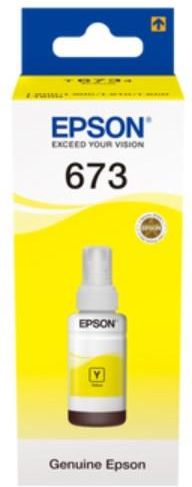 Tusz EPSON EcoTank 673 Żółty Oryginalny żółty wkład z tuszem Epson T673 sprawia, że drukowany tekst, ilustracje i projekty wyglądają profesjonalnie . Wkład ten ma bardzo dużą pojemność i jest przeznaczony do dużej intensywności drukowania. Tusze Epson zapewniają wysoką jakość dokumentów biznesowych, etykiet, nadruków na kopertach, jak również zdjęć. Kolory są intensywne i naturalnie głębokie, a co najważniejsze nie widać na nich nieestetycznych smug. Kompatybilny z drukarkami EcoTank L1800 EcoTank L800 EcoTank L805 EcoTank L810 EcoTank L850 Pożegnaj kartridże - Technologia EcoTank Drukarka EcoTank zasadniczo różni się od większości drukarek – zamiast kartridży ma duży zbiornik na atrament, do którego samodzielnie nalewa się tusz z załączonych butelek. Przygotowanie drukarki ze stałym zasilaniem w atrament jest proste, uzupełnianie nie powoduje zabrudzeń, a niezawodna konstrukcja gwarantuje kolejne strony ładnych wydruków. Łatwe, wydajne i ekonomiczne rozwiązanie. POZOSTAŁE KOLORY Z TEJ SERII: